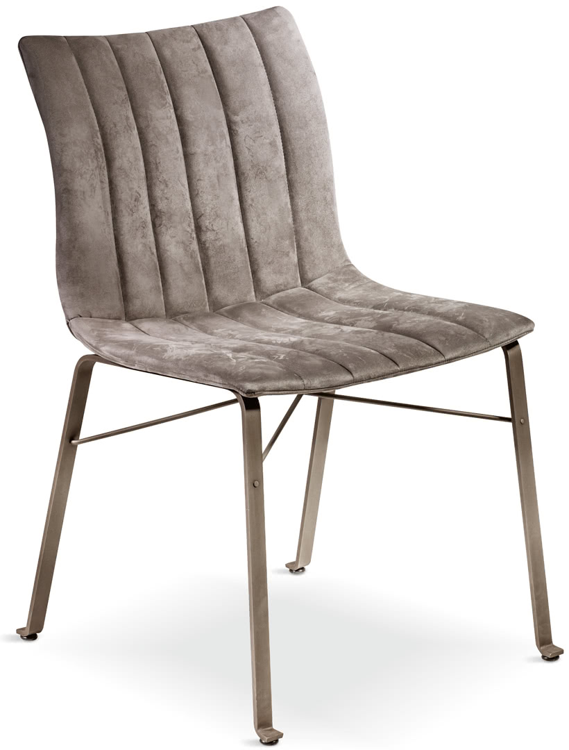 Sedia moderna imbottita Ginevra con gambe in ferro.
