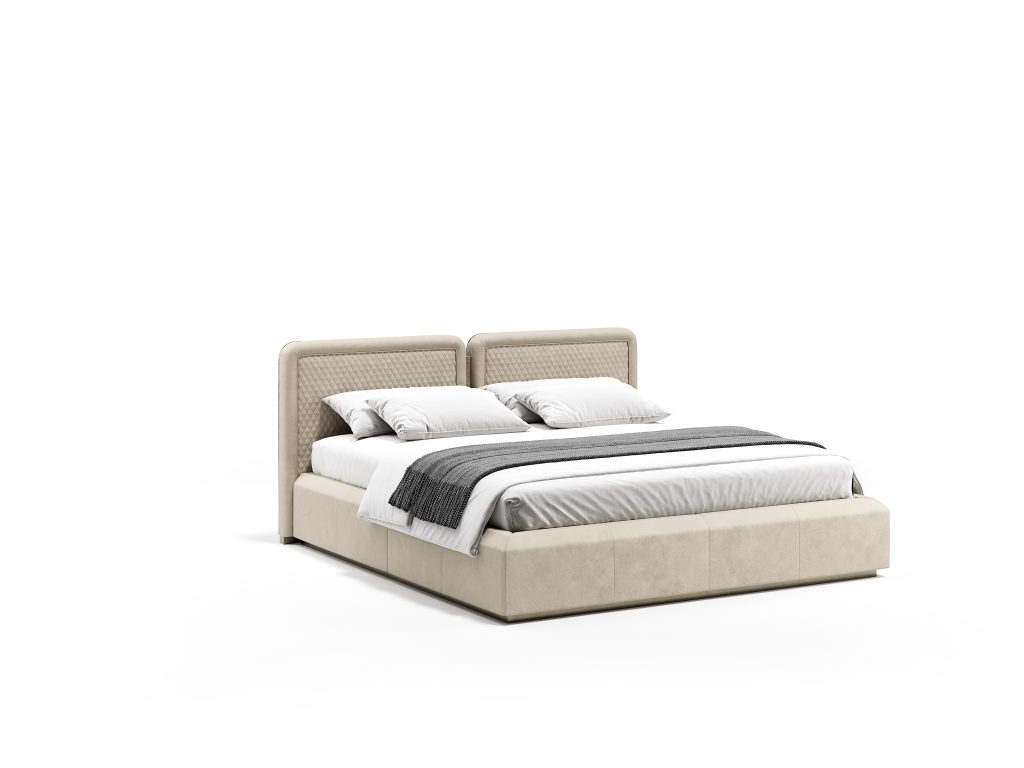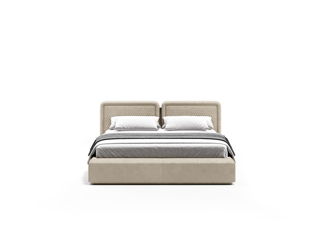 Purezza di linee ed equilibrio di forme per il letto Orion. La nuova testata curva conferisce profonda morbidezza e appoggio confortevole.