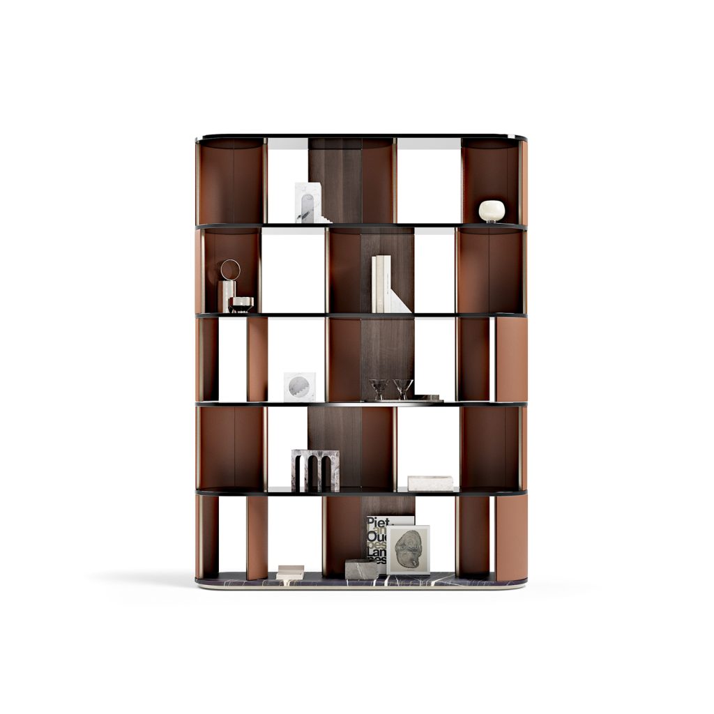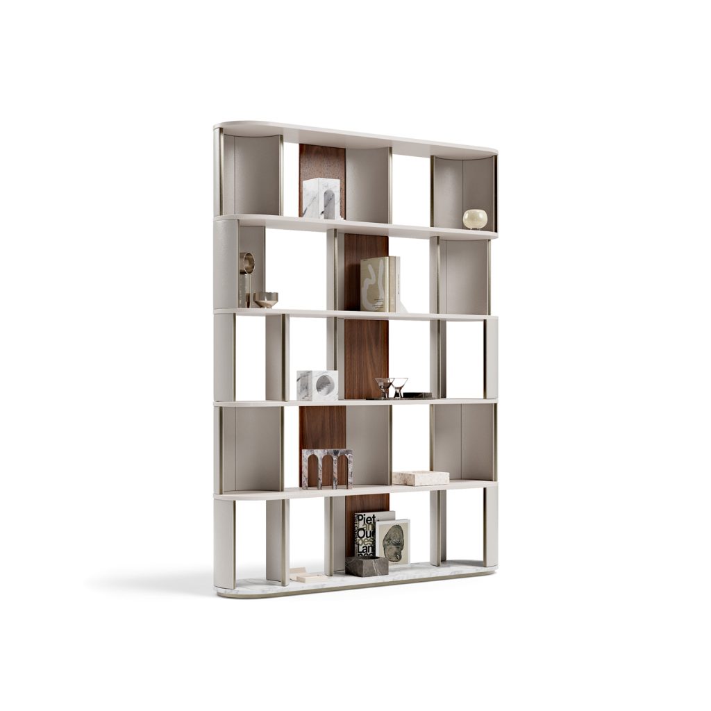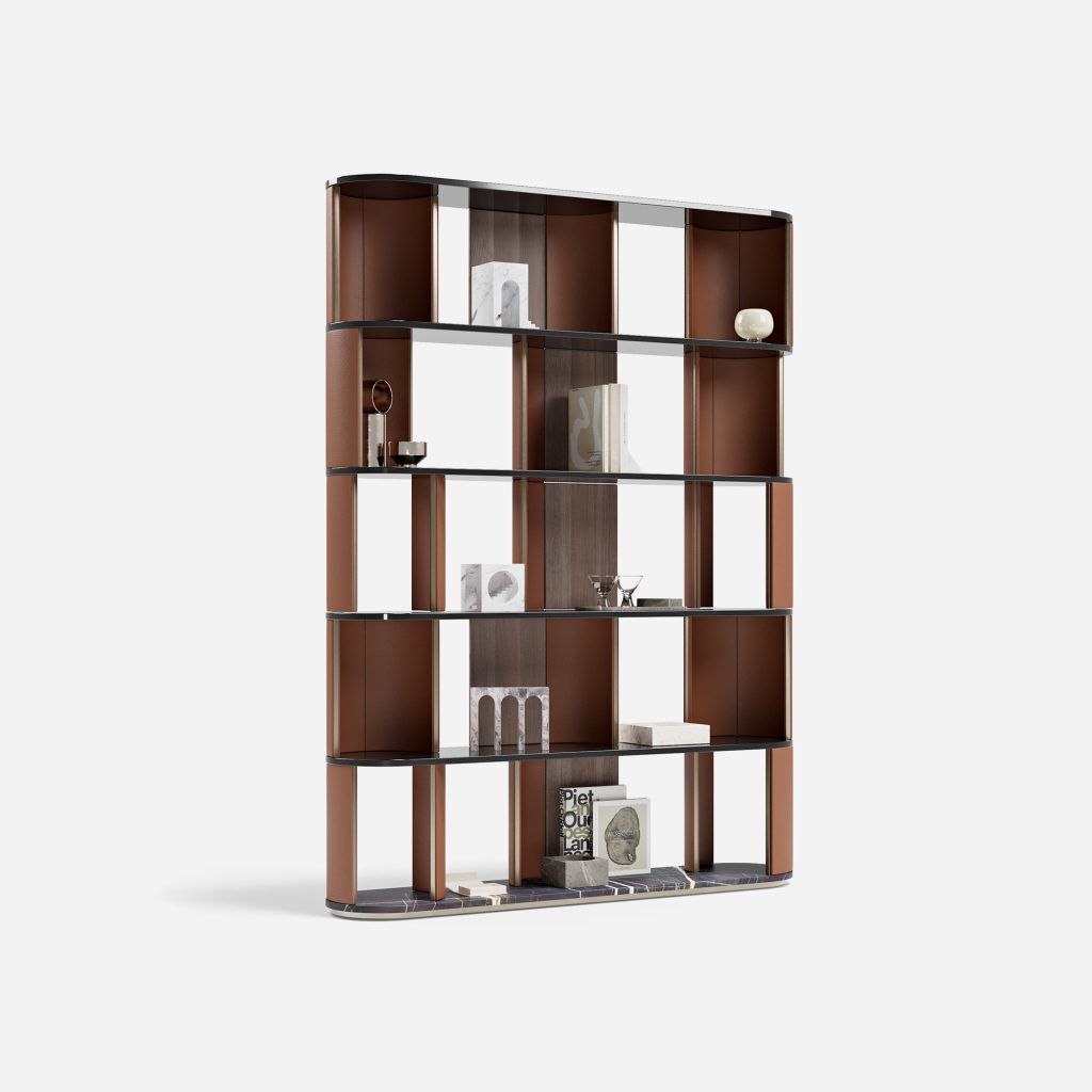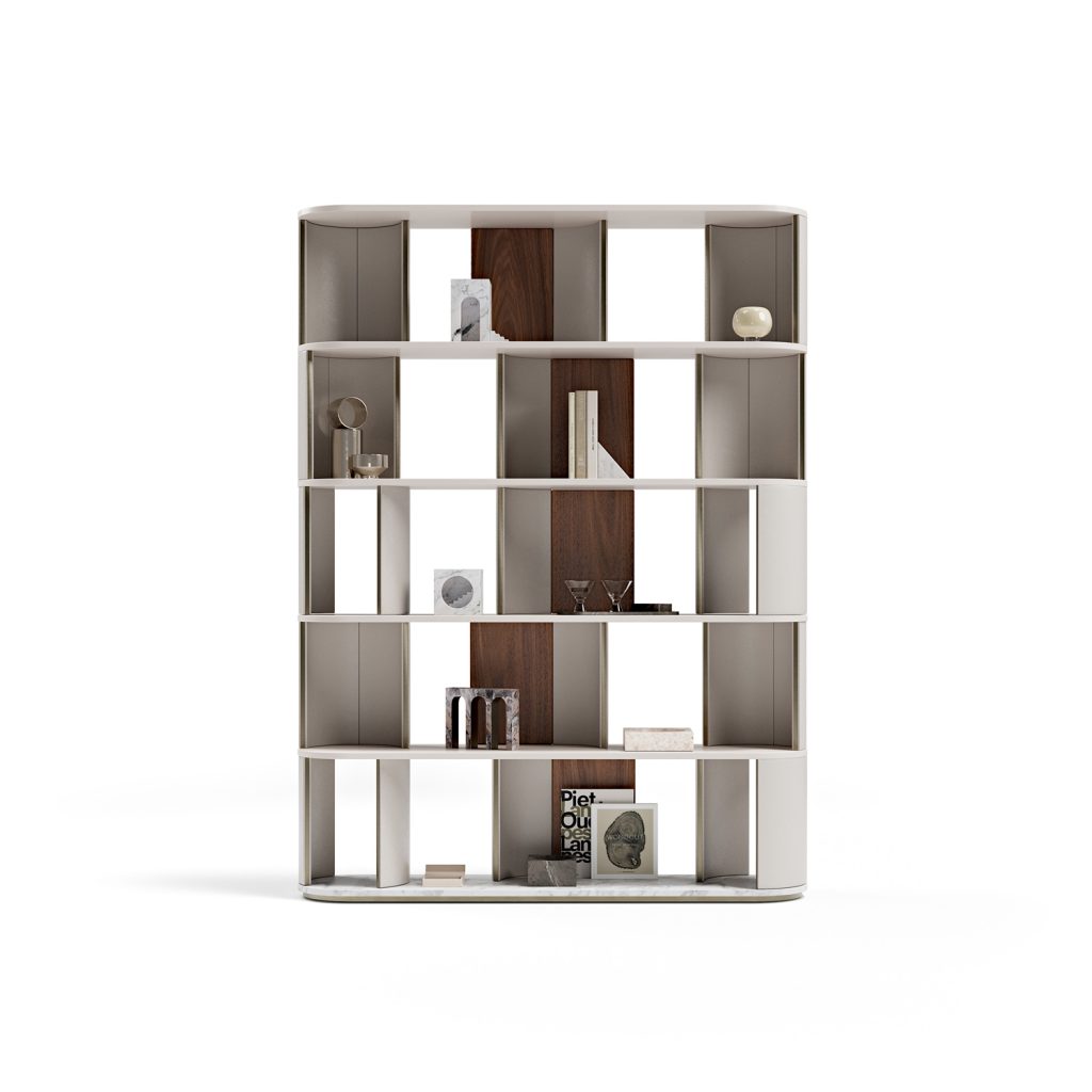 Libreria con struttura in legno.