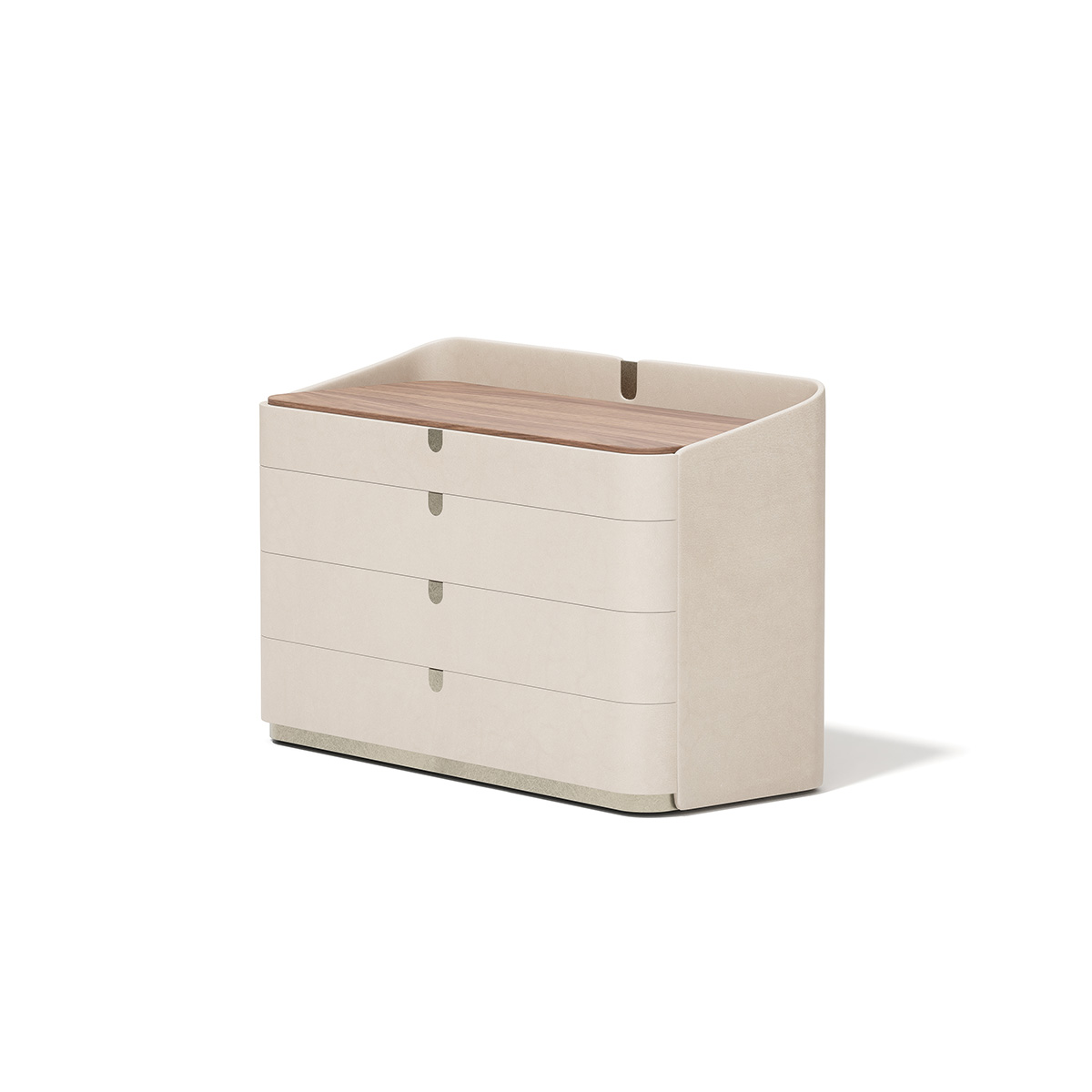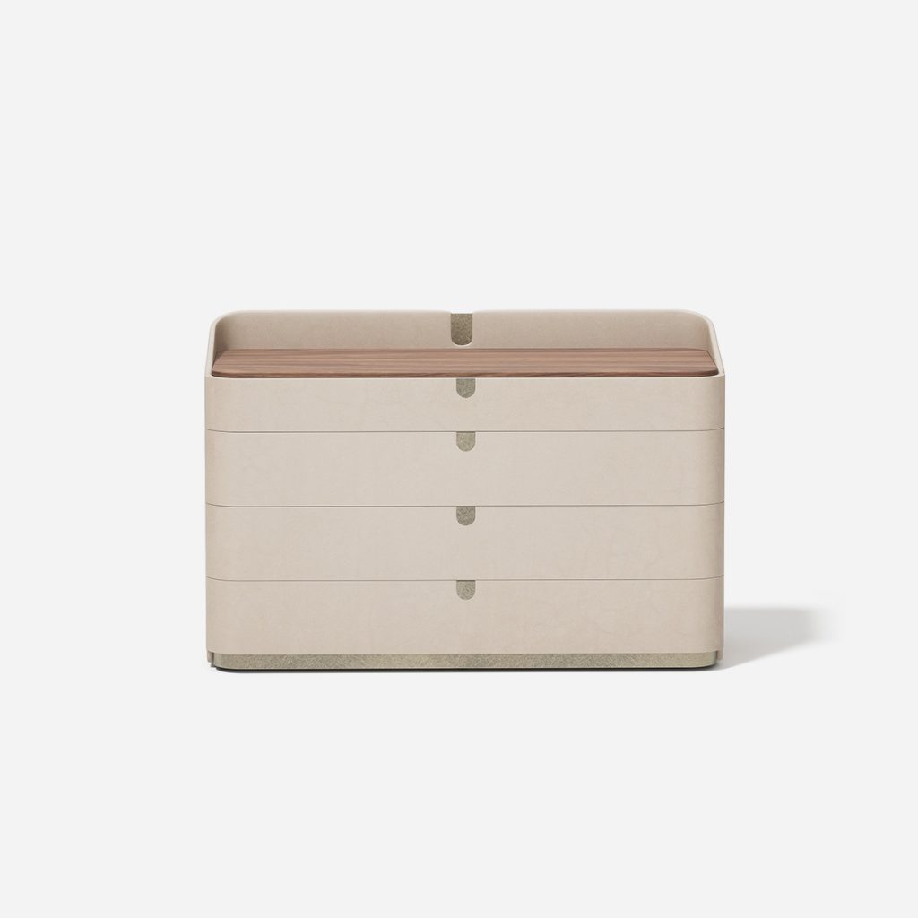 Adornato con lussuosa pelle, questo comò emana maestria e raffinatezza, aggiungendo un tocco di opulenza a qualsiasi ambiente della camera da letto. La sua texture liscia e morbida invita a un’esperienza tattile, mentre il lavoro artigianale intricato crea una sensazione di arte e prestigio. Dotato di quattro cassetti, questo comò offre soluzioni pratiche di storage senza compromettere lo stile. N. 4 cassetti in finitura laccato push-pull. Piano opzionale in marmo.