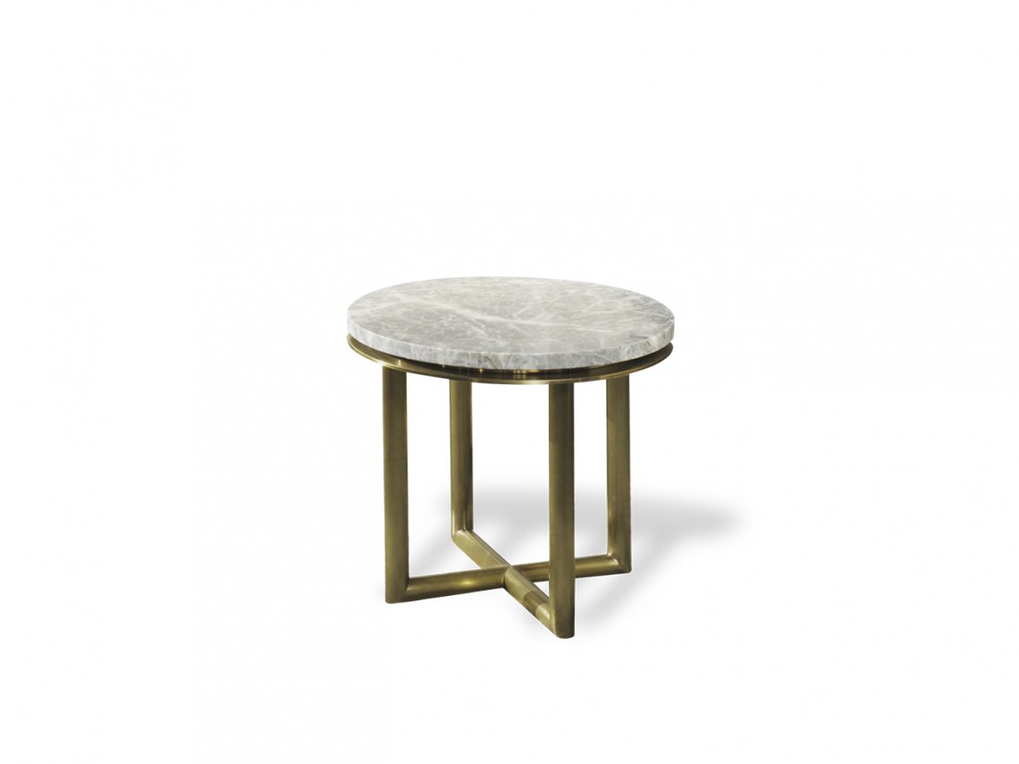 The collection of coffee tables Grant is characterized by a metal base with a tubular cross motif that gives them further elegance and refinement. The precious marble top is supported by a metal edge, which increases its thickness. The collection offers a variety of sizes and heights, to fully meet the needs of a living area with a complex design and different pieces of upholstered furniture.