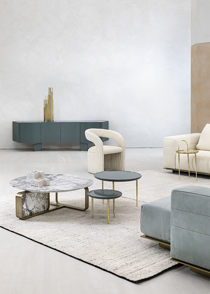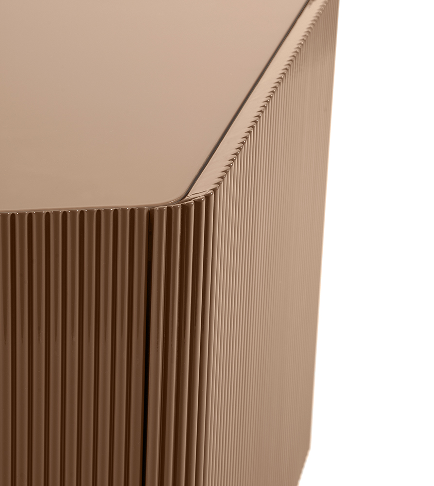 Diamond is a storage unit with contemporary lines particularly suitable for an eclectic living area. The double ”L” shaped bases supports a storage unit with doors finely ribbed. All available finishes have been selected from a range of natural colours that can be easily combined with other pieces. It is available with 3 or 4 doors, each end door opening outwards. A modern and exclusive look, in which art and design coexist in perfect harmony, is reached thanks to the linear design skills that distinguishes it.