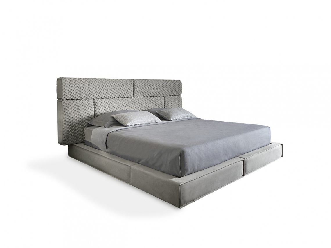 Bed Hug is characterized by a headboard decorated with soft three-dimensional quiltings with rhomboid pattern that underline great sartorial skills. It is available both in leather and fabric upholstery.