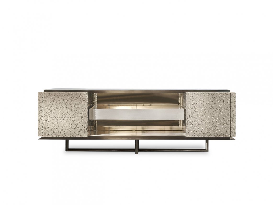 With a contemporary design the storage unit Grant is the perfect choice for a living area. A complex lacquering process with ”Crackle” effect gives it a decorative appearance, hardly found in other contemporary furniture. A metal base with a tubular cross motif gives further elegance and refinement to this piece of furniture.