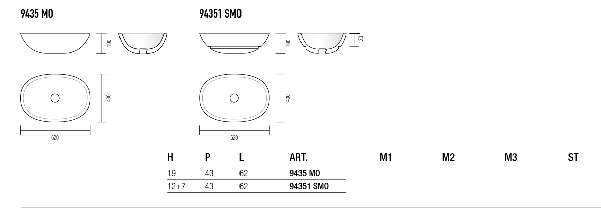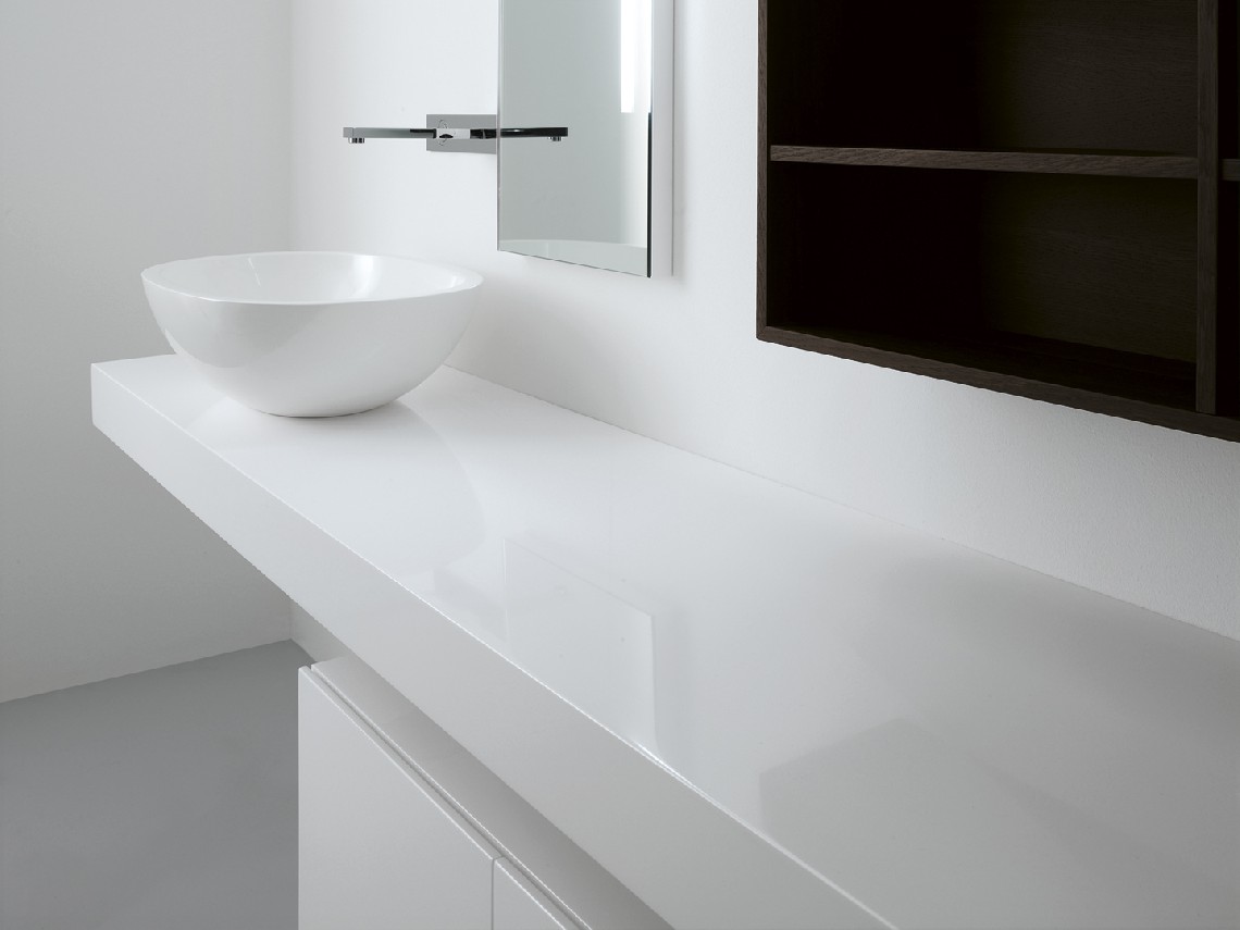 Lavabo da appoggio o semi incassato, in Monolith, senza troppo pieno, tappo piletta in Monolith.