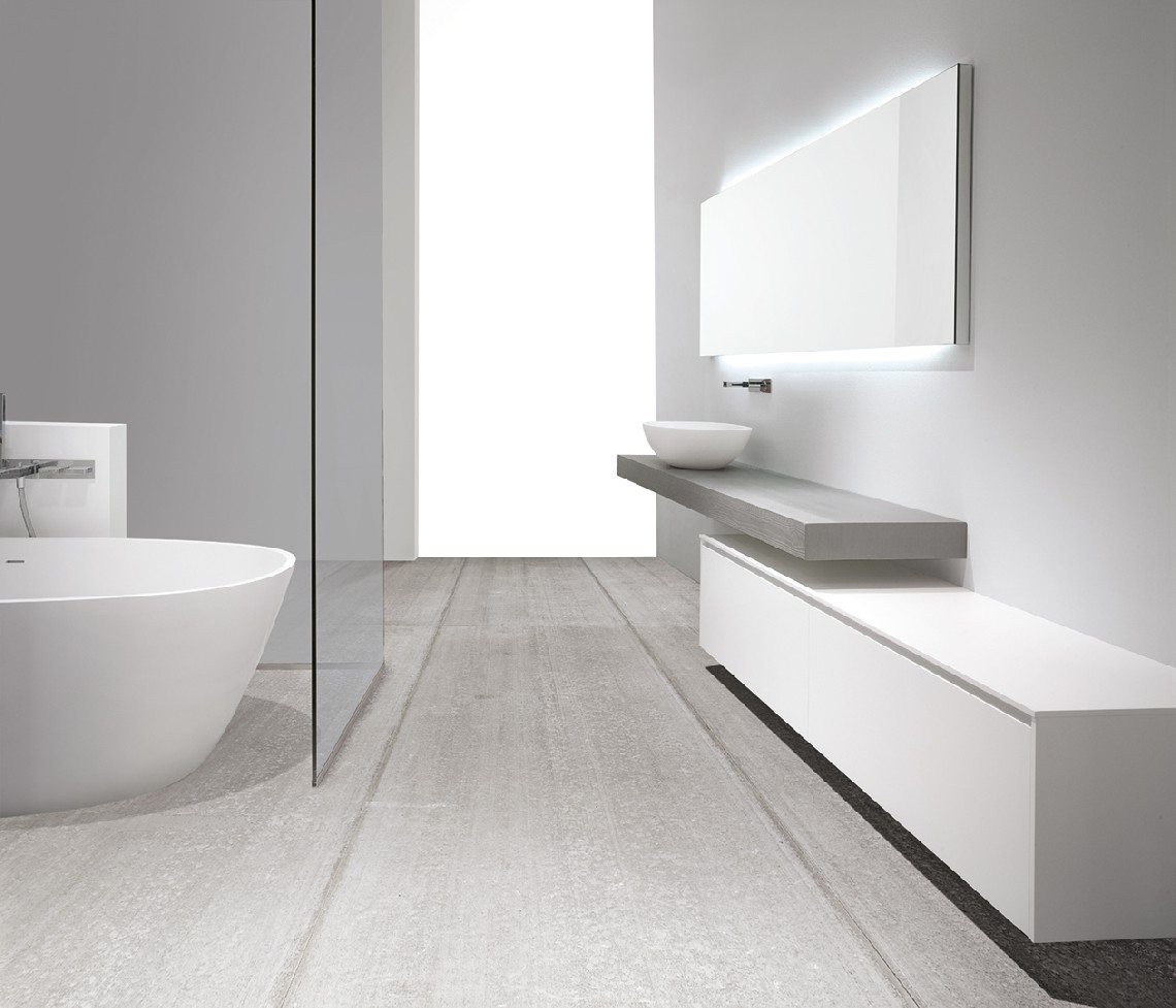 Top or semi built-in top washbasin in Monolith, with no overflow, for Monolith drain plug.