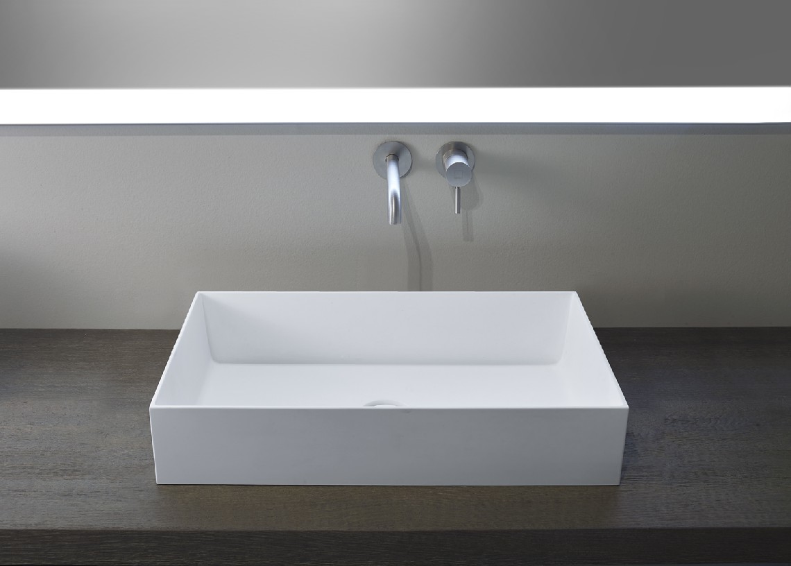 Top or semi built-in top washbasin in Monolith, with no overflow, for Monolith drain plug.