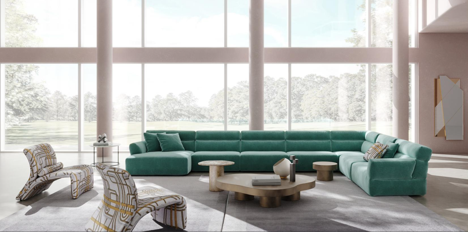 The modular sofa that invites you to relax, thanks to its soft and generous shapes, offering a total comfort.