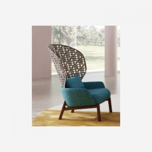Bergere having a generous back, peacock shaped, characterized by a geometric
