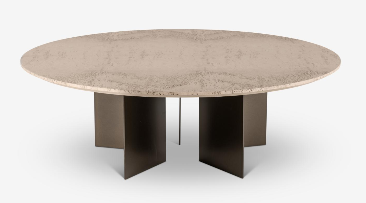 featuring a birch burl or marble top.