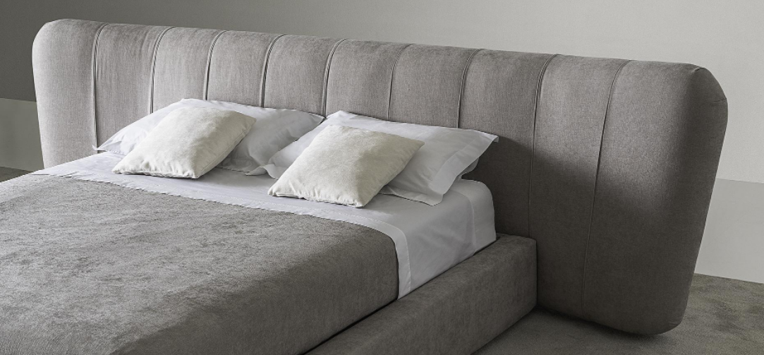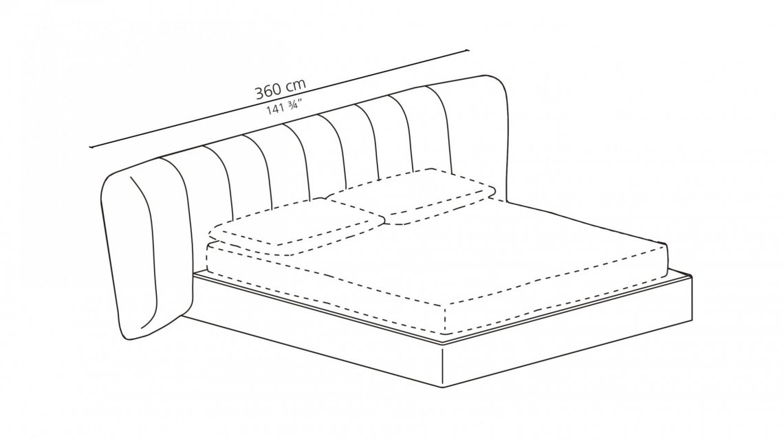 Upholstered bed, characterized by an important and enveloping headboard with a special pleated tailoring. The ROYALE family also includes chairs, sofas and armchairs.