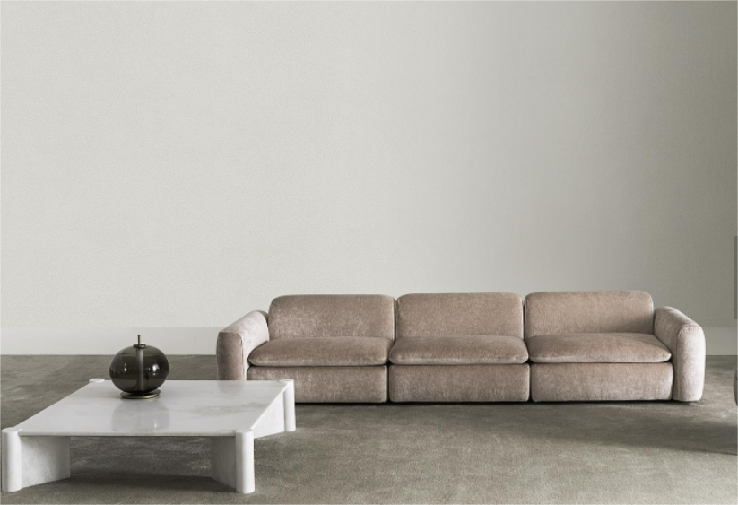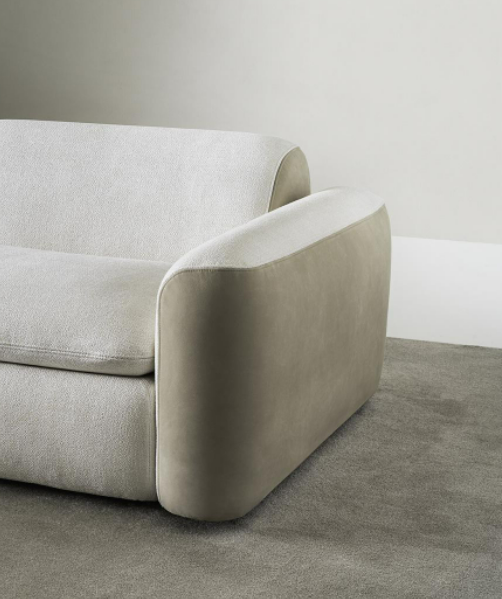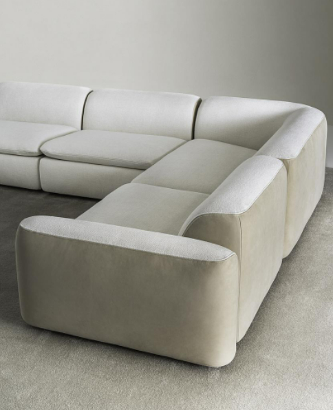 Modular seating system with a soft and harmonious line, characterized by the delicate curves of the armrests and backrest. It is possible to create a wide range of solutions with central elements, terminals, corners, chaise longue and open-end elements. Suitable for both residential and hospitality projects.