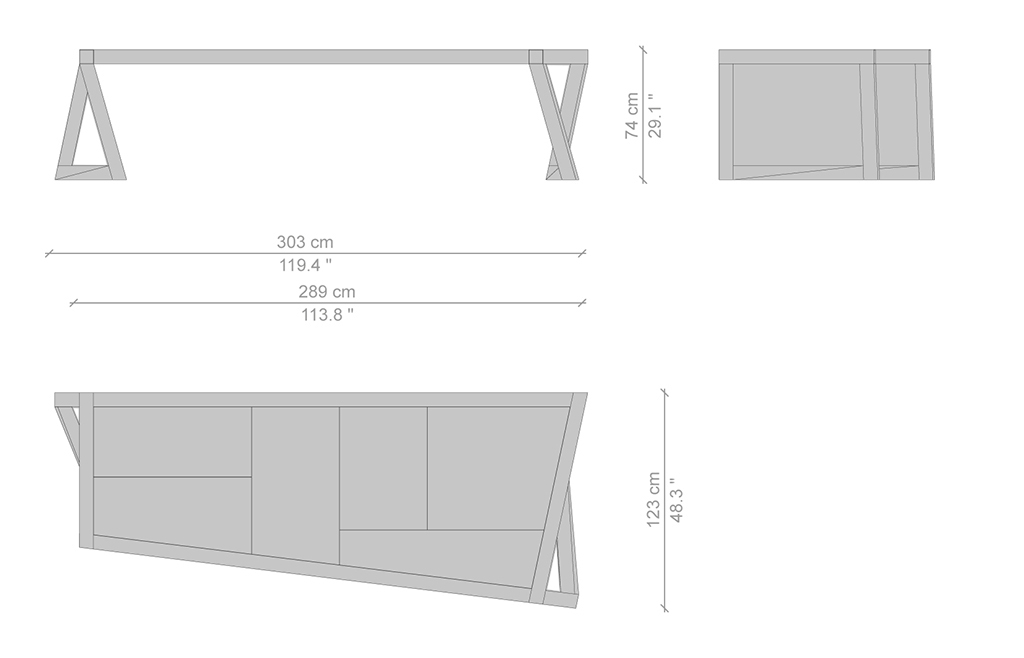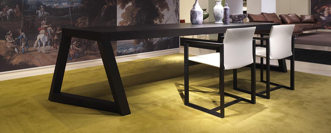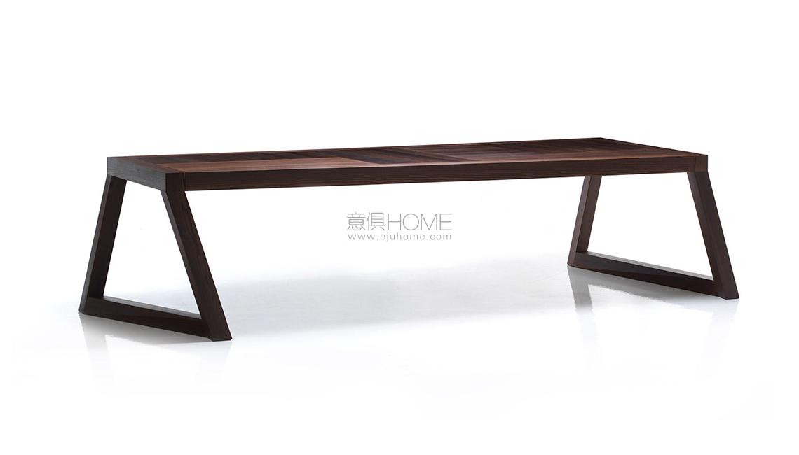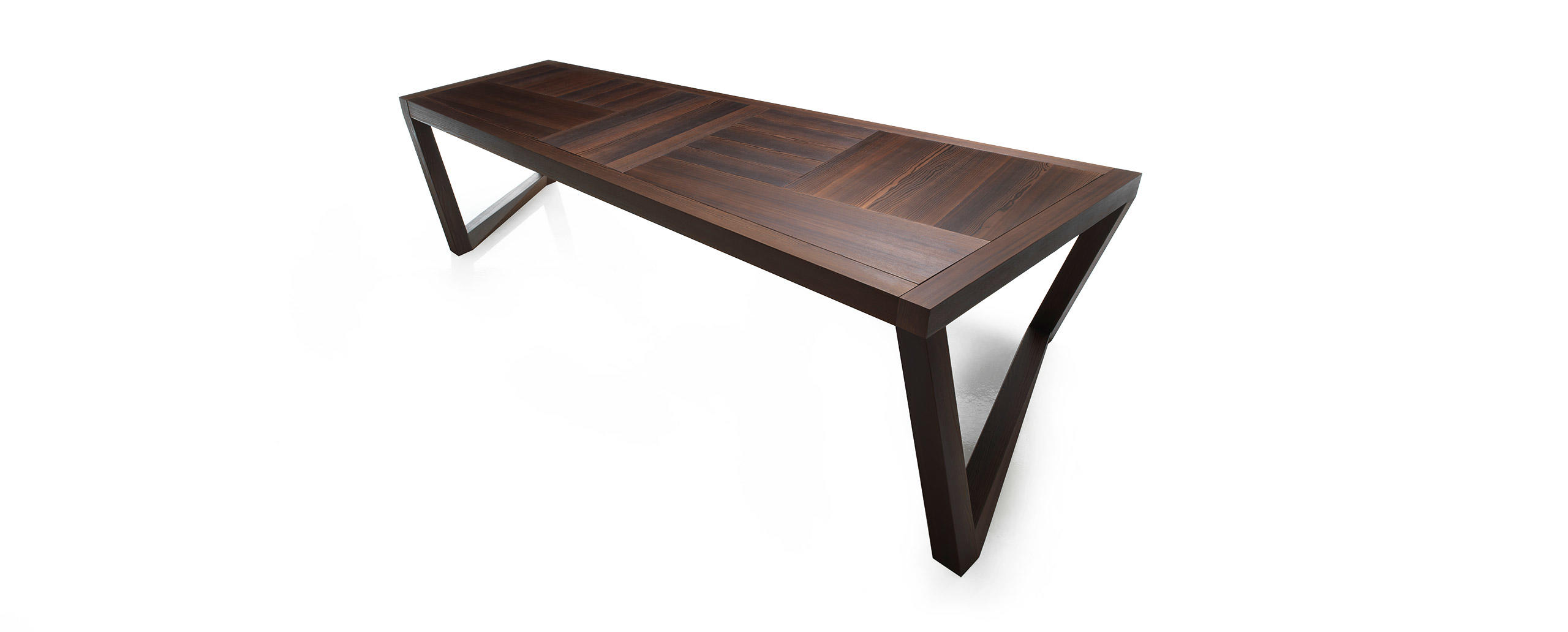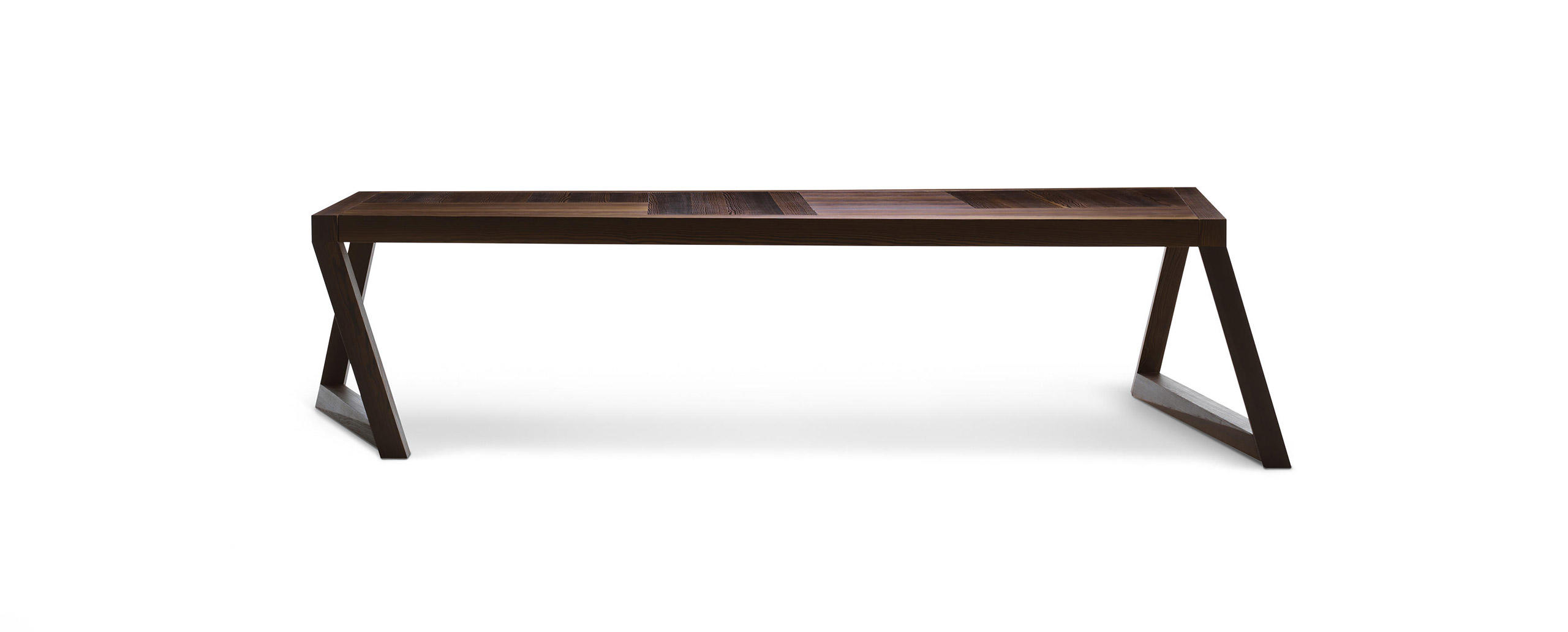 Piero Lissoni definisce questo tavolo-scultura come “un arredo dalla personalità diversa e spiazzante”, racchiusa in una combinazione asimmetrica di tanti pezzi diversi. Il tratto lineare dei sostegni e del piano si piega dinamicamente nei giunti per creare direzioni opposte di rotazione. Le sapienti deformazioni sono visibili solo attraverso una visione a 360° che consente di percepire appieno il tratto enigmatico del mobile. La raffinatezza del massiccio piano rettangolare rievoca la matrice asimmetrica nella composizione delle lastre di rivestimento, rifinite con un particolare intarsio materico che accentua la lavorazione fumigata del legno. Gli accorgimenti costruttivi ed estetici traducono l’eccellenza artigianale di Cassina mettendo in luce lo studio meticoloso compiuto sui giunti e sugli snodi tra gli elementi di forma irregolare.