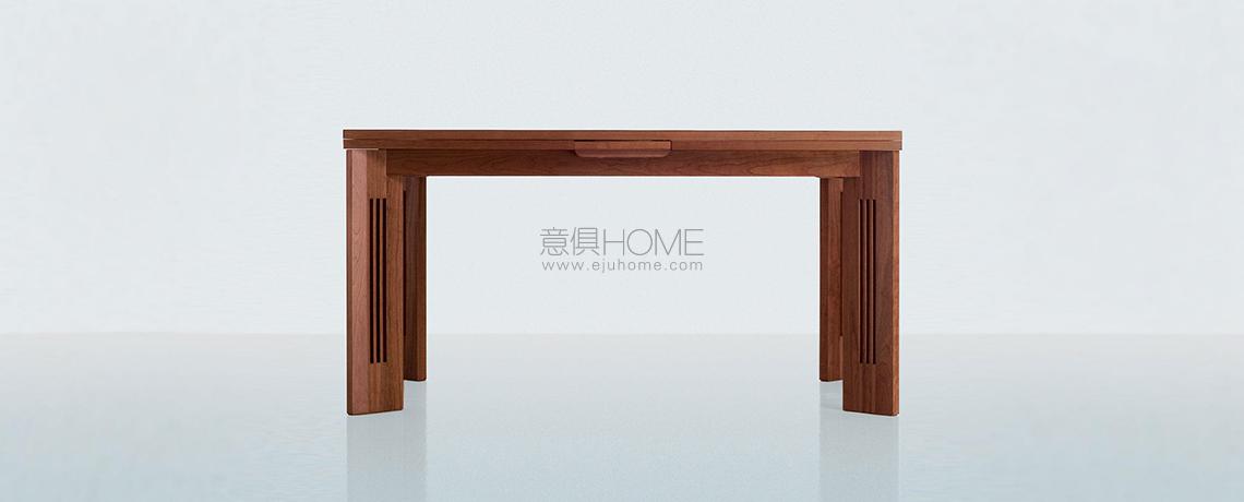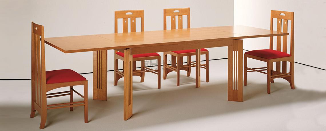 Tavolo ampliabile, esempio di perfetto equilibrio tra classico e contemporaneo, che Charles Rennie Mackintosh progettò nel 1905. L’unicità della struttura in ciliegio naturale deriva dal sistema di apertura sotto il piano, che consente di estendere il tavolo con facilità grazie ad una tavoletta collocata al centro del lato più lungo. Sollevando il piano superiore si possono così estrarre una o entrambe le prolunghe sottostanti per estendere la superficie di appoggio.