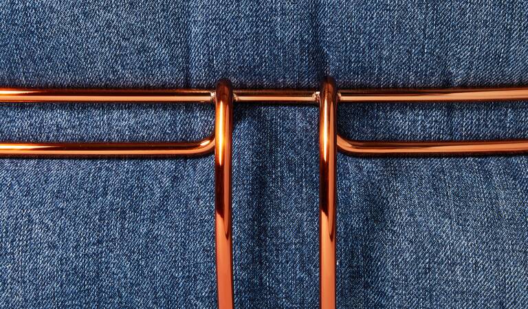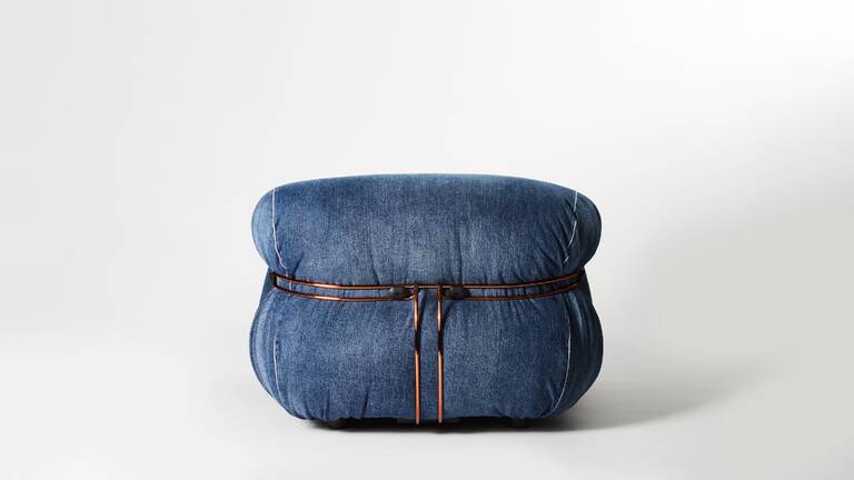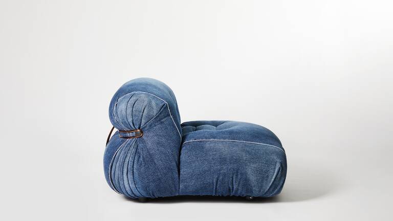 Soriana by Afra & Tobia Scarpa poltrona in denim crafted by Roy Roger’s采用最高品質的日本自鎖邊牛仔布制成,這是一種特殊的長纖維美國棉布,專門用上世紀60年代的傳統有梭織機織造,其特點是在白邊上伴有一條被稱為“自鎖邊”的紅線,可防止磨損。