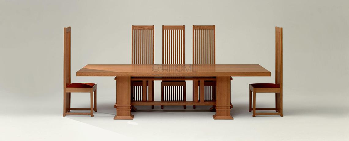 Il design rigoroso di questa sedia rappresenta pienamente l’approccio progettuale di Wright, riconoscibile nella struttura con schienali alti e montanti verticali in legno tipici dei mobili delle prairie houses realizzate dall’architetto. La sedia fu ideata per la sala da pranzo della casa di Frederick C. Robie, tra gli edifici di massimo impatto della storia dell’architettura americana. Nelle intenzioni dell’autore l’oggetto diventa elemento di definizione per l’area intorno alla tavola da pranzo, resa più intima e separata dal resto della stanza. La sua eleganza austera è riprodotta da Cassina nell’assoluto rispetto del disegno autentico, ricorrendo alle lavorazioni di alta ebanisteria che contraddistinguono la qualità MedaMade nel mondo.