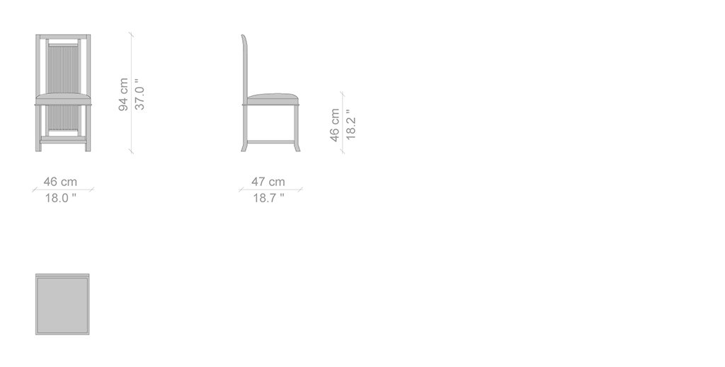 Una sedia estremamente funzionale, progettata nel 1907 per la Avery Coonley House, tra i massimi esempi dello stile praire house. Wright utilizza suoi tipici montanti verticali per una costruzione caratterizzata dalla  sapiente combinazione tra forme e materiali, capace di confondersi con l’ambiente circostante in un’armonia perfetta. Come in ogni progettazione del maestro, il rapporto con la natura occupa un ruolo centrale. Il modello con schienale alto è per questo concepito come  un arredo estremamente funzionale, in grado di donare eleganza e comodità a chi lo usa raggiungendo al tempo stesso una simmetria essenziale fatta di linee semplici e pulite.