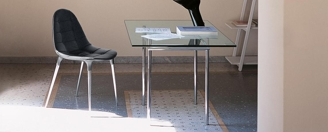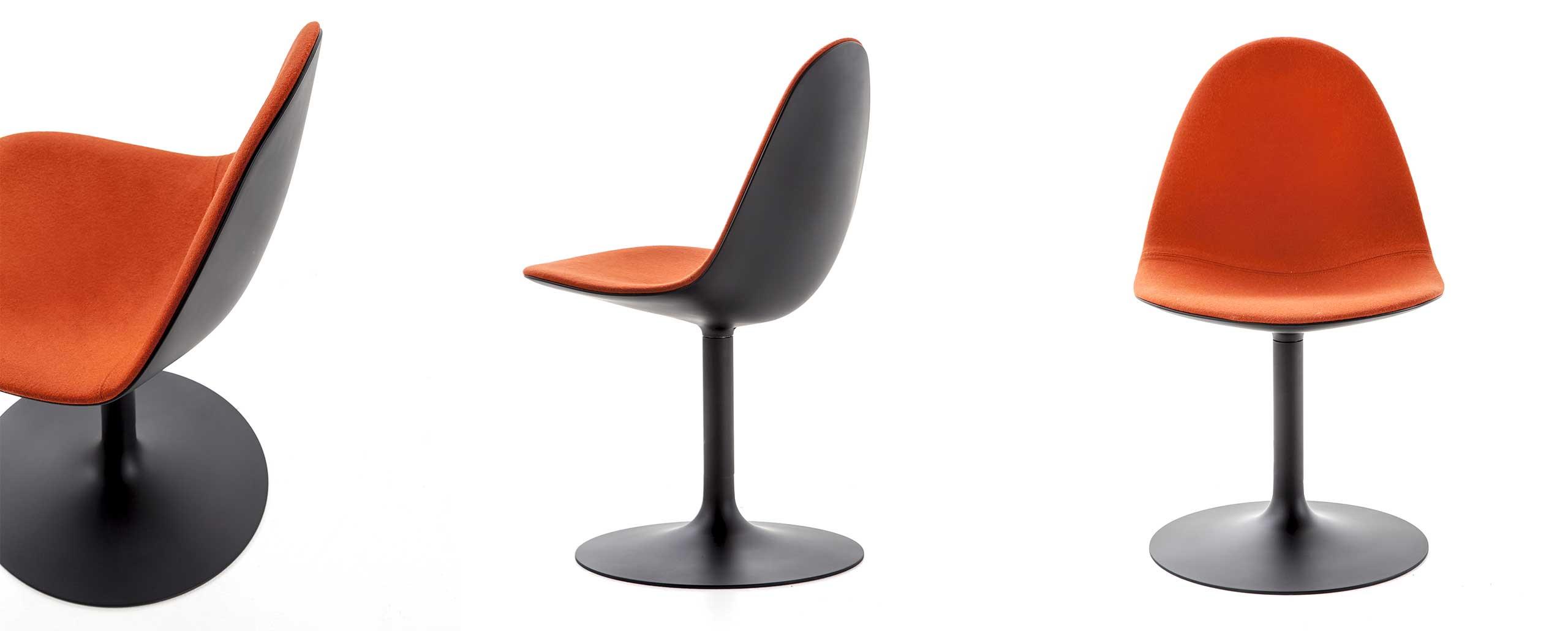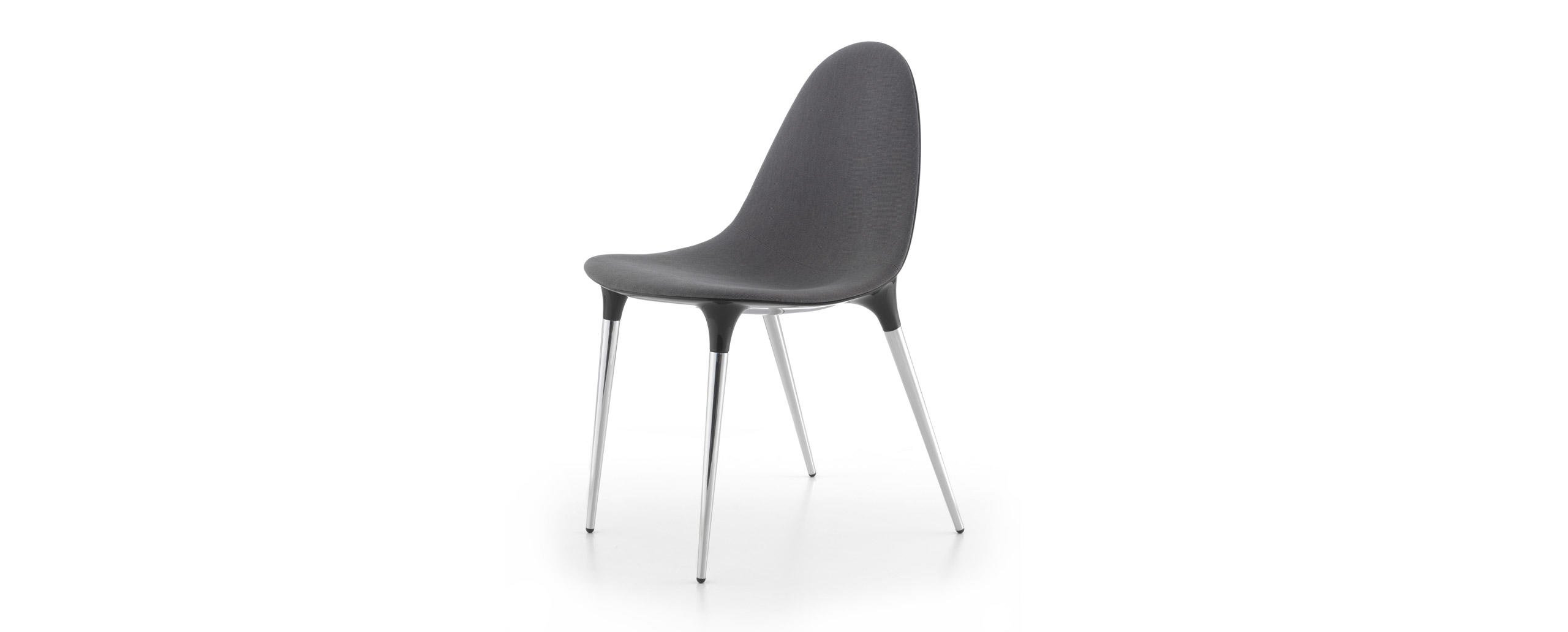 Due sedie emblematiche dell’approccio innovativo di Cassina, in grado di coniugare eleganza stilistica, tecnica costruttiva e praticità quotidiana in un prodotto maturo ed eclettico, adatto sia ad uno uso residenziale che contract. La serie Caprice e Passion si amplia per introdurre due nuove versioni interamente realizzate in alluminio, rispettivamente caratterizzate da una base girevole a forma di petalo e da una struttura a 4 razze con o senza ruote. La sagoma futuristica della scocca in nylon, derivata dai più avanzati esperimenti di fabbricazione, è rivestita con un’imbottitura liscia o capitonné, brevettata industrialmente e modellata sulla struttura come un abito sartoriale dalle linee fluide e leggere. Se Caprice si distingue per il design iconico e distintivo, Passion ne reinterpreta la costruzione e le finiture in una poltroncina dal profilo accogliente e confortevole.