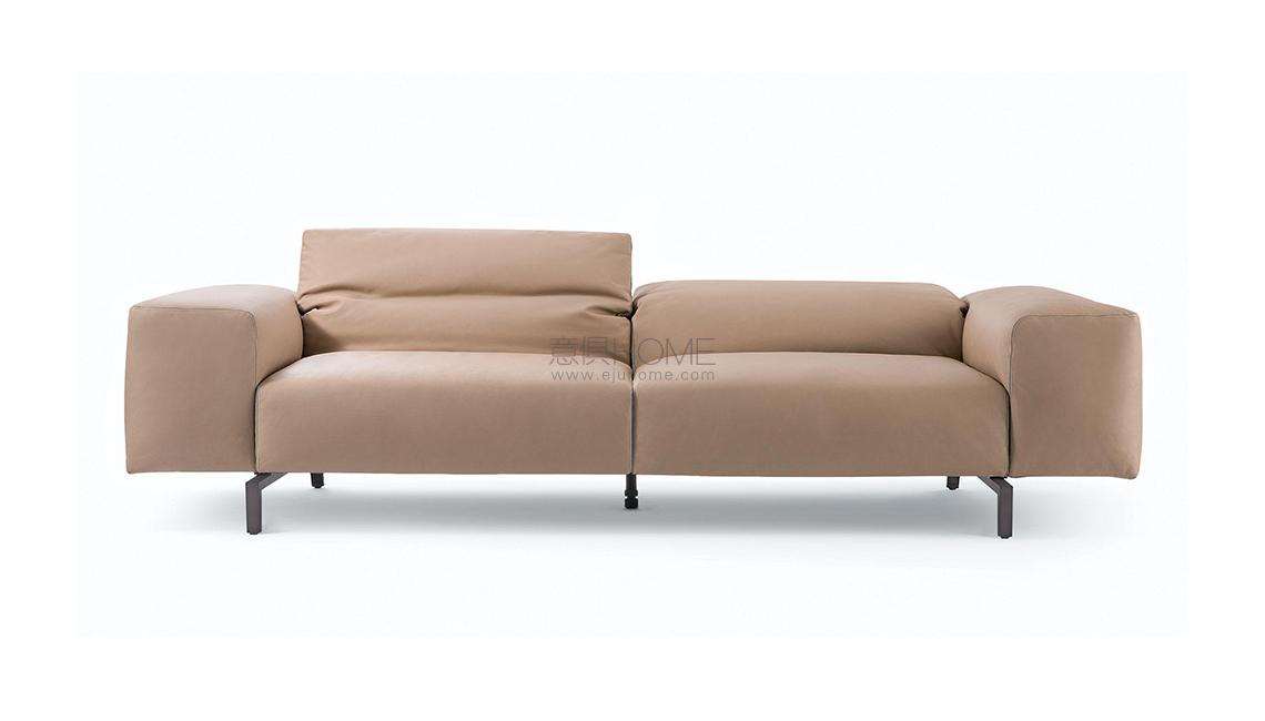 Un divano dalle proporzioni morbide e generose, ma anche leggere e minimali, progettate nell’ottica della versatilità, della funzionalità e del comfort. Scighera, con imbottitura in piuma, offre un ampio sistema di sedute ed elementi componibili che consentono di creare configurazioni estremamente ampie e flessibili. Il poggiatesta ribaltabile e le dimensioni amplificate dei braccioli, proposti anche nella versione stretta, diventano tratti connotanti del design. Il particolare meccanismo di movimento integrato nello schienale consente le diverse inclinazioni e si richiude a filo bracciolo per enfatizzare la linearità e il minimalismo delle forme. Un ulteriore tocco di distinzione deriva dalla pregiata cucitura con profilo in gros-grain, disponibile in quattro tonalità naturali.