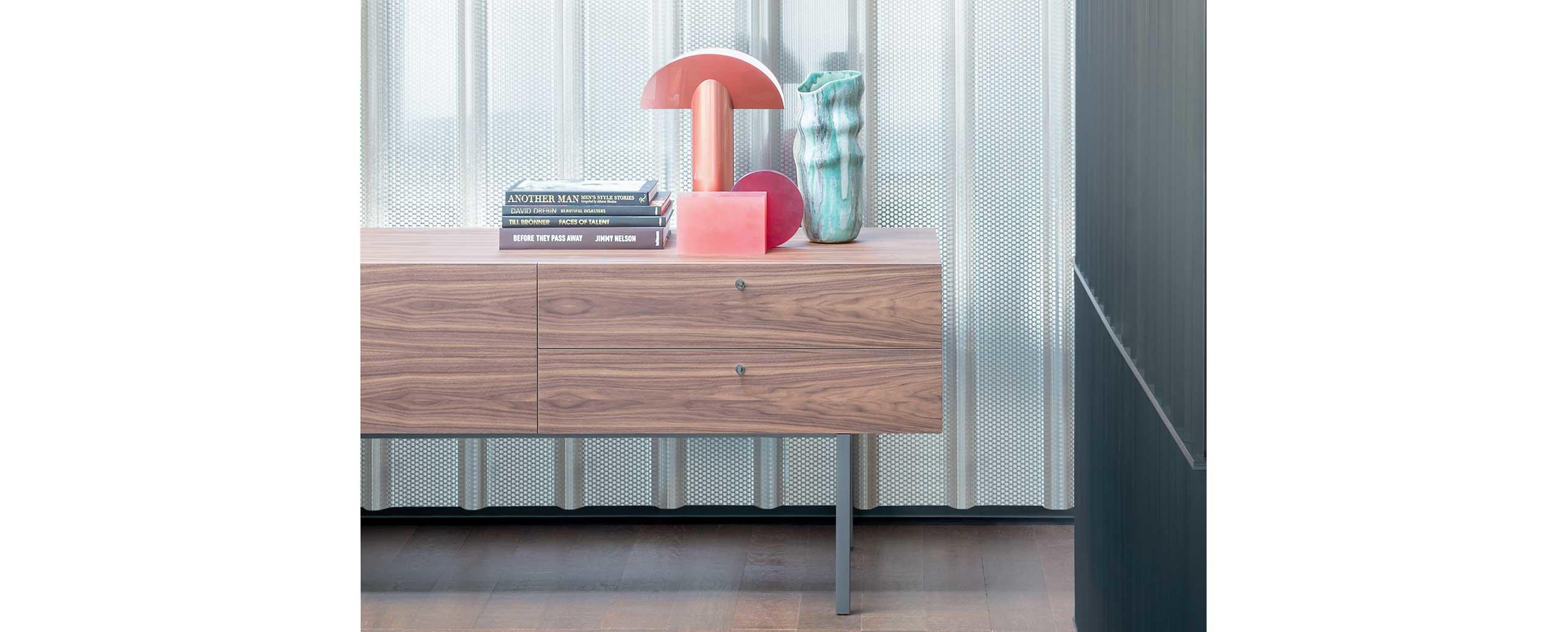 Una gamma di contenitori dal design essenziale e intramontabile, progettati per adattarsi facilmente ai diversi ambienti e stili di arredo. La collezione Flat è stata oggetto di una significativa rivisitazione volta al rinnovamento stilistico, al perfezionamento tecnico e all’ampliamento delle configurazioni disponibili, studiate per il living e per la zona notte. Gli elementi, resi ancora più versatili e preziosi, sono modulati nell’ottica dell’organizzazione e della funzionalità, sia essa di contenimento o supporto, mentre le nuove varianti in legno, marmo, laccato e metallo esaltano la contemporaneità delle forme. Il sistema si apre a soluzioni e composizioni personalizzate destinate a un pubblico poliedrico e ad esigenze d’uso molteplici.