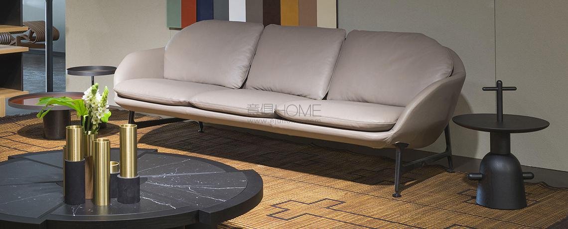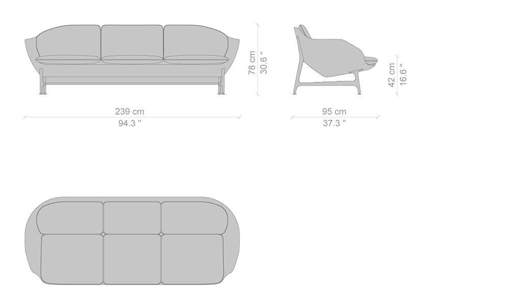 Un divano sospeso dalle linee minime e dagli spessori ridotti, che traducono la sensazione di comfort estremo attraverso un’estetica fluida e sinuosa. Vico rispecchia il desiderio innato di creare un nido privato, dove potersi rilassare senza dover rinunciare alla forma, alla struttura e alla comodità che contraddistinguono il design italiano. Il suo stile contemporaneo, essenziale e trasversale, sostituisce l’uso del legno con una base in fusione di alluminio in cui la memoria del passato incontra l’innovazione tecnologica. L’abilità sartoriale di Cassina si dimostra nel rivestimento rimbovibile in tessuto, espressione di una sfida costruttiva che invece di incollare il materiale al profilo sottile sceglie di esaltarlo con una lavorazione a tappezzeria. Hayon sviluppa parallelamente anche il concetto di forma, creando una sensazione morbida e organica apprezzabile da qualsiasi angolazione, mentre l’uso delle cinghie elastiche contribuisce ad accrescere l’alto livello di confort.
