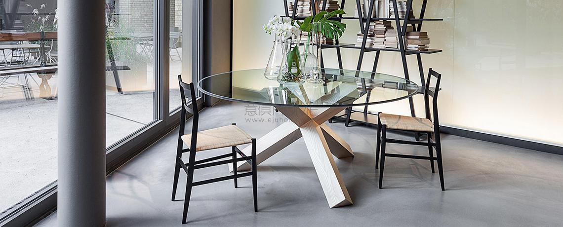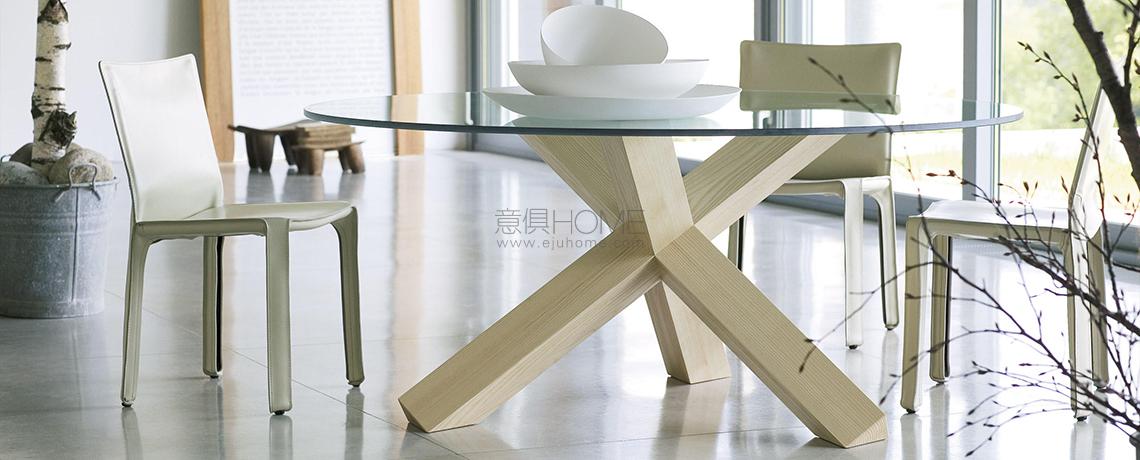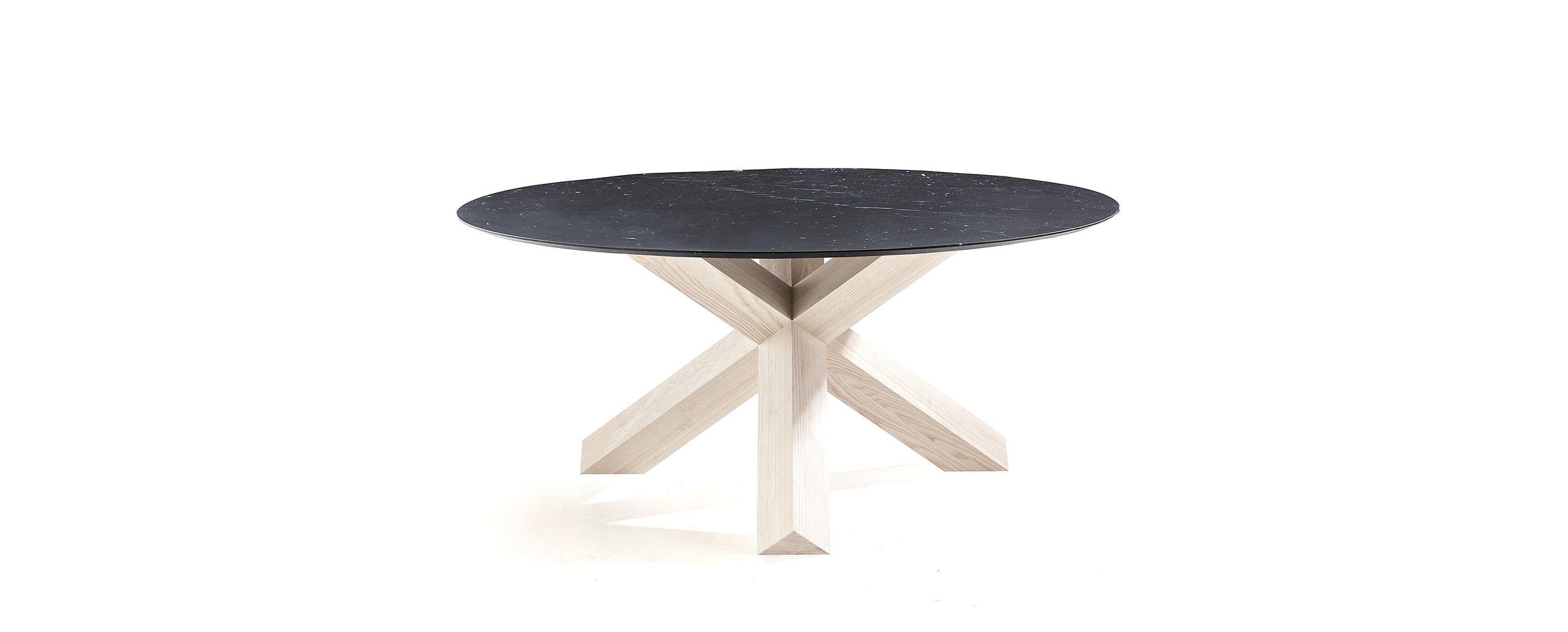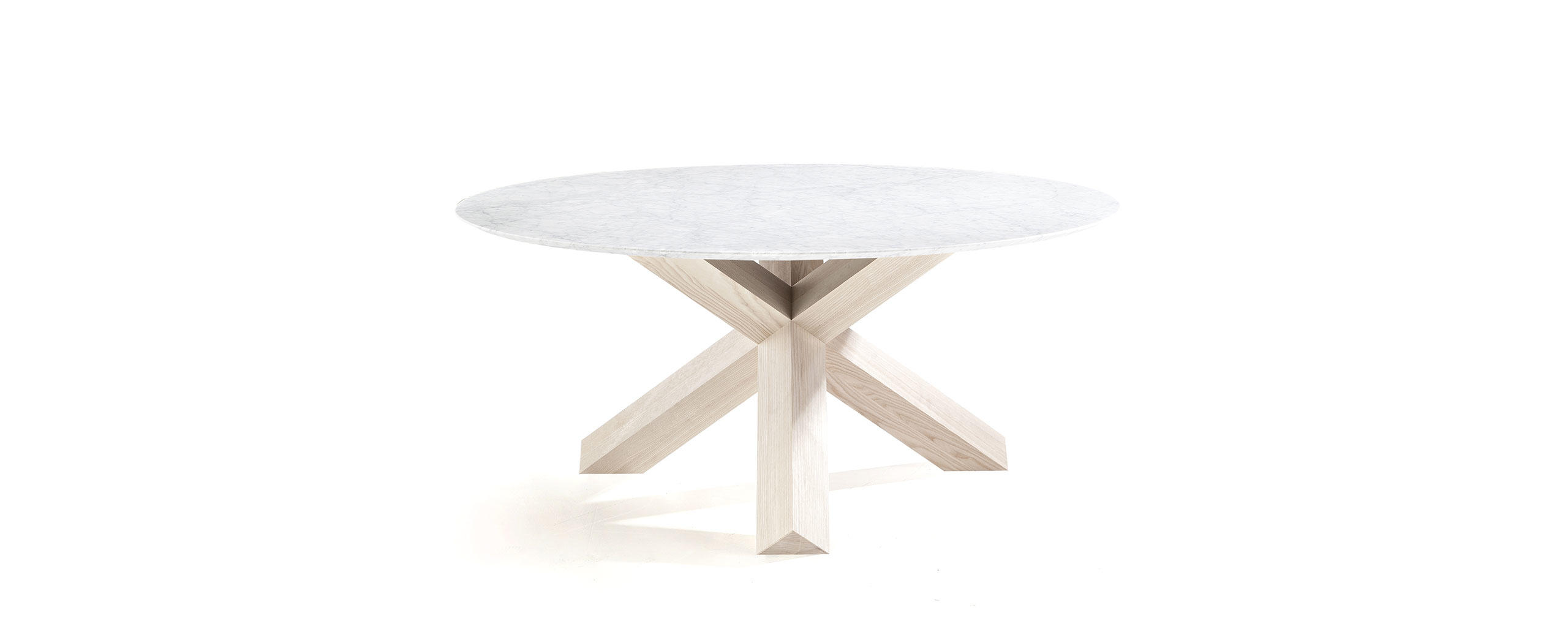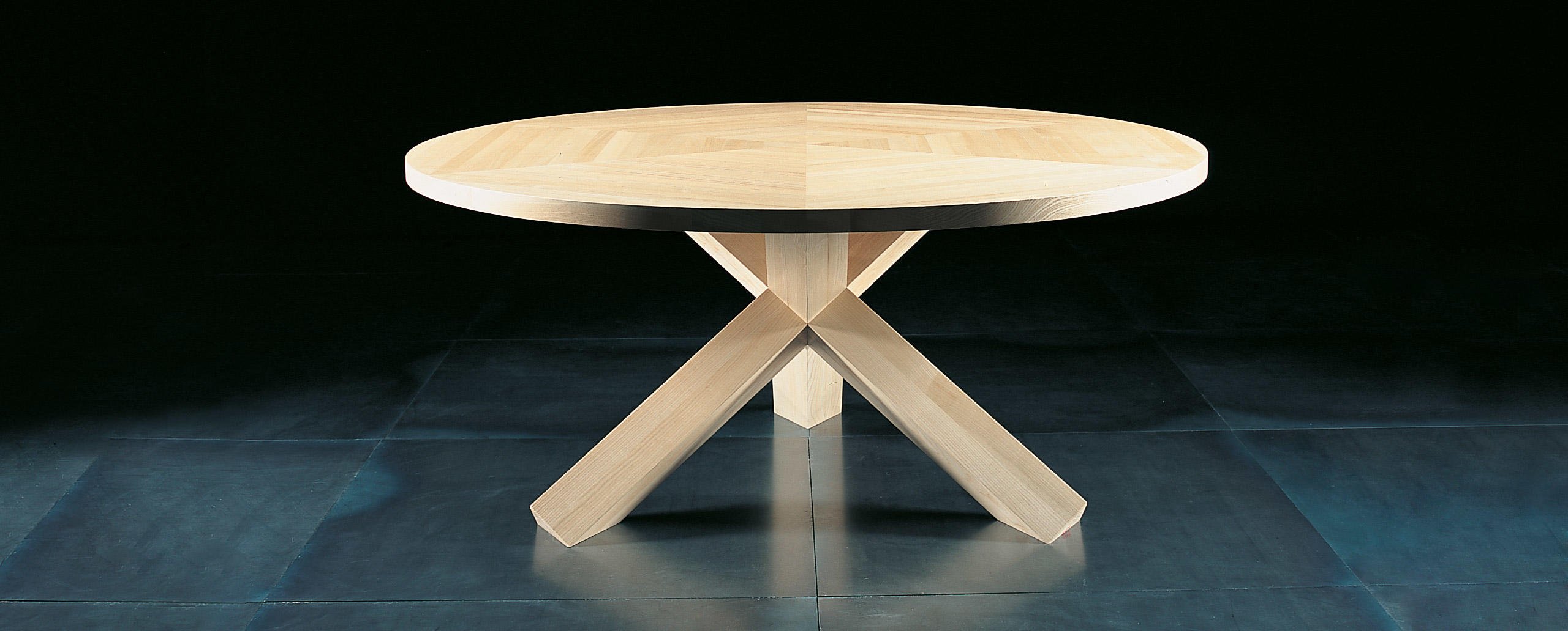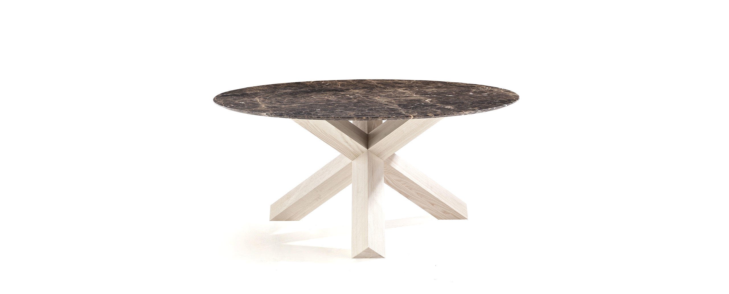 La Rotonda è un tavolo che trasforma il calore e l’essenza del legno in bellezza, presentando una base semplice e scultorea in cui tre gambe a sezione quadrata si incrociano perpendicolarmente incastrandosi e compenetrandosi alla perfezione per sostenere il piano sottile. I tre elementi sono uniti da incastri solidi direttamente ricavati dal massello grazie alla straordinaria padronanza di Cassina nella lavorazione del legno, sempre in equilibrio tra qualità tecnica e raffinatezza estetica. Le basi sono disponibili in un’ampia varietà di legni, con piano in legno o cristallo, cui si aggiungono le nuove versioni in marmo bianco Carrara, nero Marqui?a e marrone Emperador.