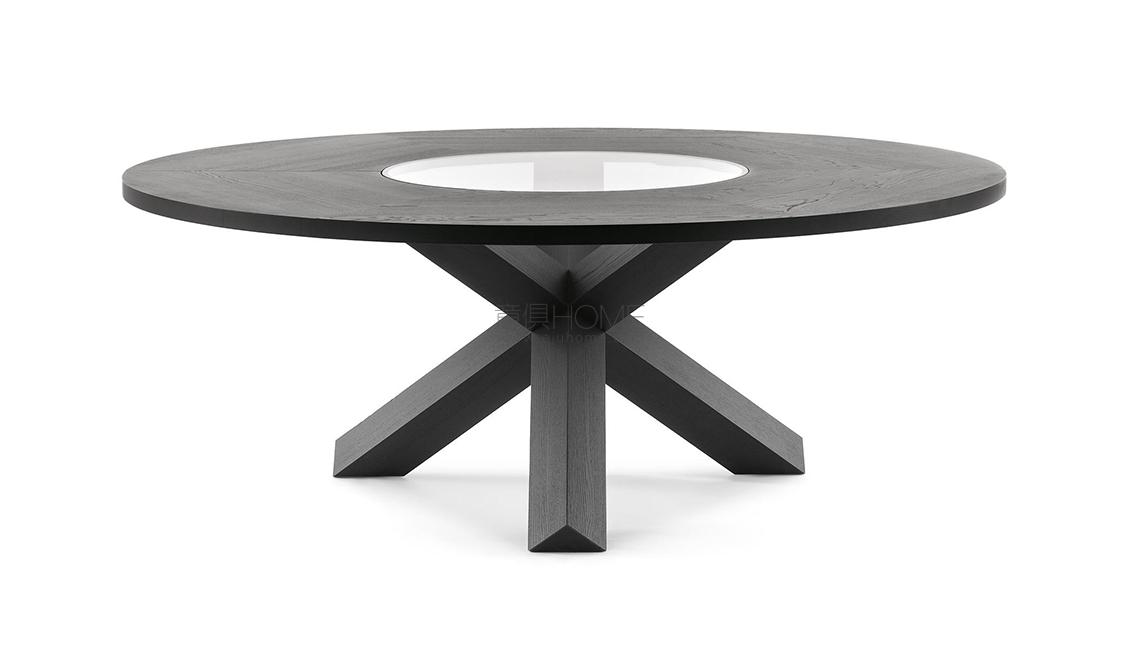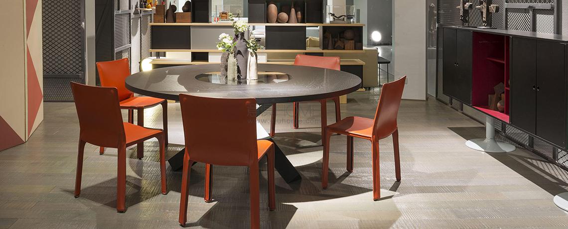 Mario Bellini trae ispirazione dalla tradizione della convivialità orientale per offrire una particolare reinterpretazione del tavolo iconico La Rotonda. Il fulcro centrale è costituito da un piano girevole in cristallo, ironicamente chiamato “lazy Susan”. La lastra sottile e trasparente ruota su se stessa come un vero e proprio vassoio proiettando le gestualità antiche nelle esperienze della contemporaneità. Si tratta di una variante del tavolo La Rotonda con una base scultorea a tre gambe, esaltata dall’incastro invisibile e dalla sensazione di continuità tra gli elementi. Una caratteristica unica e inconfondibile, che dopo aver decretato il successo del modello precedente ha contraddistinto anche questa nuova versione a riconferma dell’impeccabile maestria di Cassina nella lavorazione dei legni nobili.