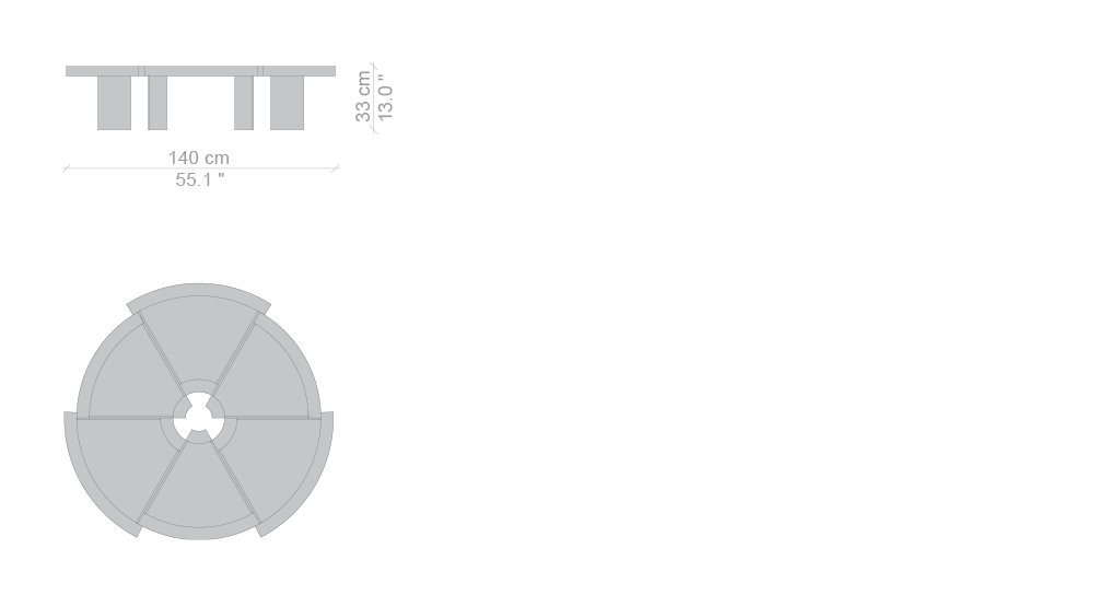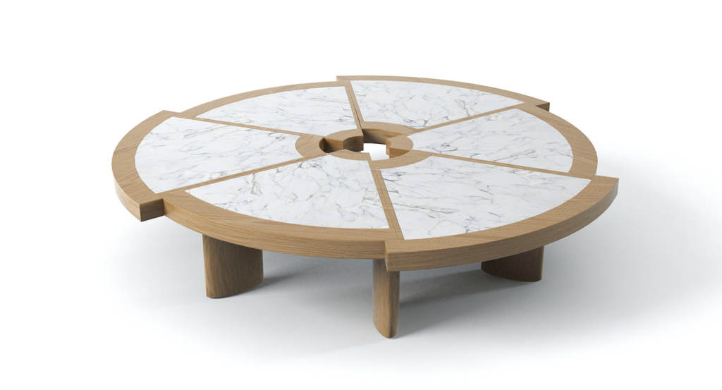 Attualmente disponibile in una sola misura, il tavolino Rio fu inizialmente ideato dalla Perriand in due diverse dimensioni. Tra il 1962, anno di progettazione, e il 1967 l’autrice adattò il modello e ne ampliò il volume per la versione destinata all’Ambasciata del Giappone a Parigi. La sua bellezza inconsueta e la sua grande funzionalità lo rendono una vera e propria opera di decoro, caratterizzata da sei spicchi di diverso raggio, accostati ma sfalsati, che creano un bordo esterno in massello articolato e un foro centrale concepito come centro di gravità spaziale. Cassina riedita il modello originale del 1962, riproducendolo nella forma originale grazie alla straordinaria capacità manuale degli artigiani di Meda.