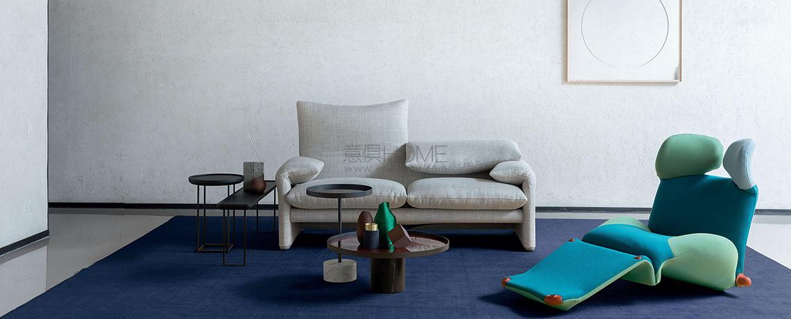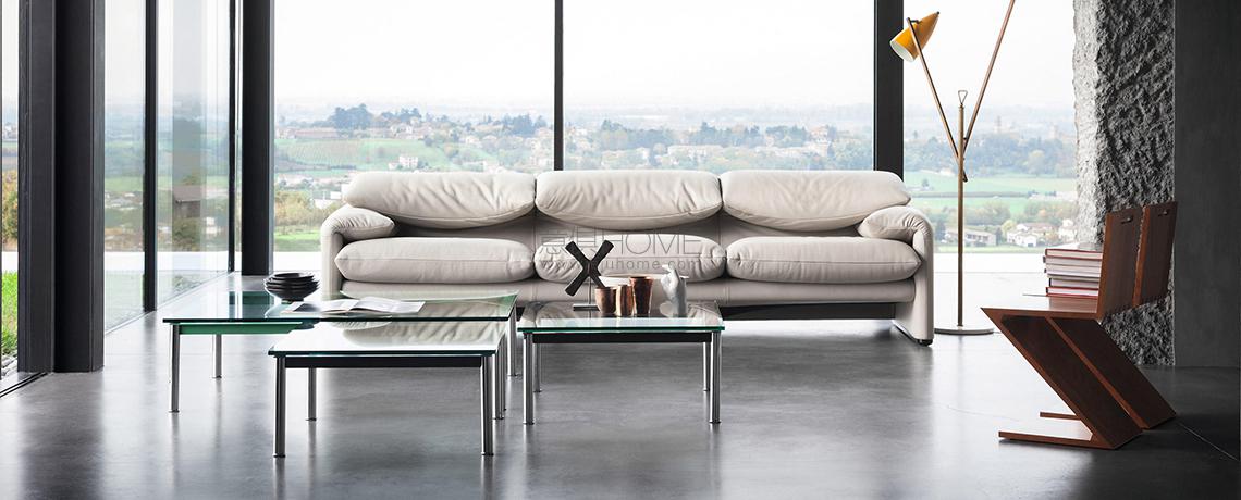 Maralunga è un divano simbolo nella collezione de iContemporanei di Cassina, opera dell’architetto e industrial designer Vico Magistretti. Vincitore del Compasso d’Oro nel 1979, Maralunga è la materializzazione dell’idea stessa di comfort, grazie alla variazione del poggiatesta per ottenere una versione a schienale alto o basso ottenuta con l’inserimento di una semplice catena da bicicletta nello schiumato dello schienale.Il modello si declina in poltrona, divani a due o a tre posti in diverse larghezze e pouf. In occasione dei suoi 40 anni, Cassina ha presentato una rinnovata interpretazione con rivestimento in tessuto o pelle, con una caratteristica cucitura lungo il profilo perimetrale, per renderlo ancora più moderno e contemporaneo, anche in versione sfoderabile per il tessuto.