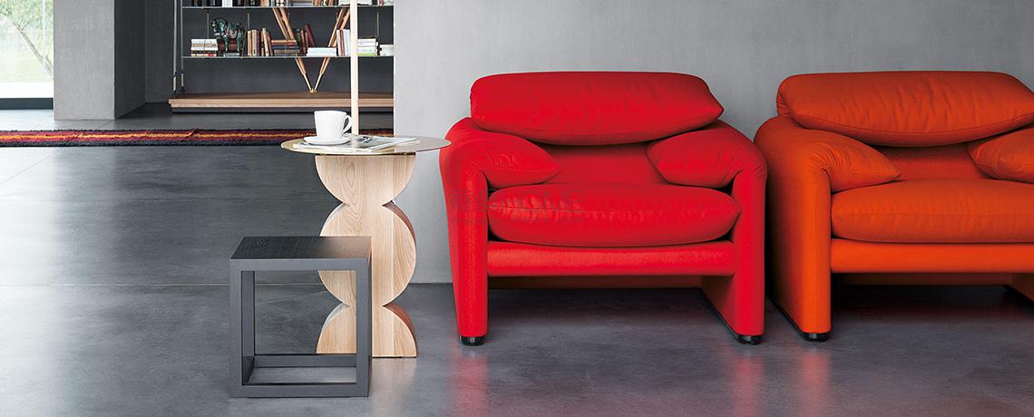 Un’opera d’arte attualmente inclusa nella collezione Ultramobile, progettata da Studio Simon come omaggio al lavoro di Constantin Brancusi. Dall’universo dello scultore rumeno sono stati ripresi due elementi producibili in serie, abbinati in un insieme perfetto che conferisce alla struttura un’elegante sensazione di movimento e continuità. Il tavolino è realizzato con una base in legno massiccio di rovere rifinita a cera, mentre il piano presenta un profilo circolare in lamina di ottone.