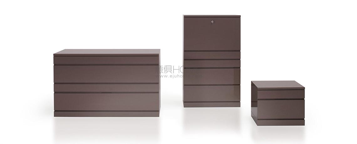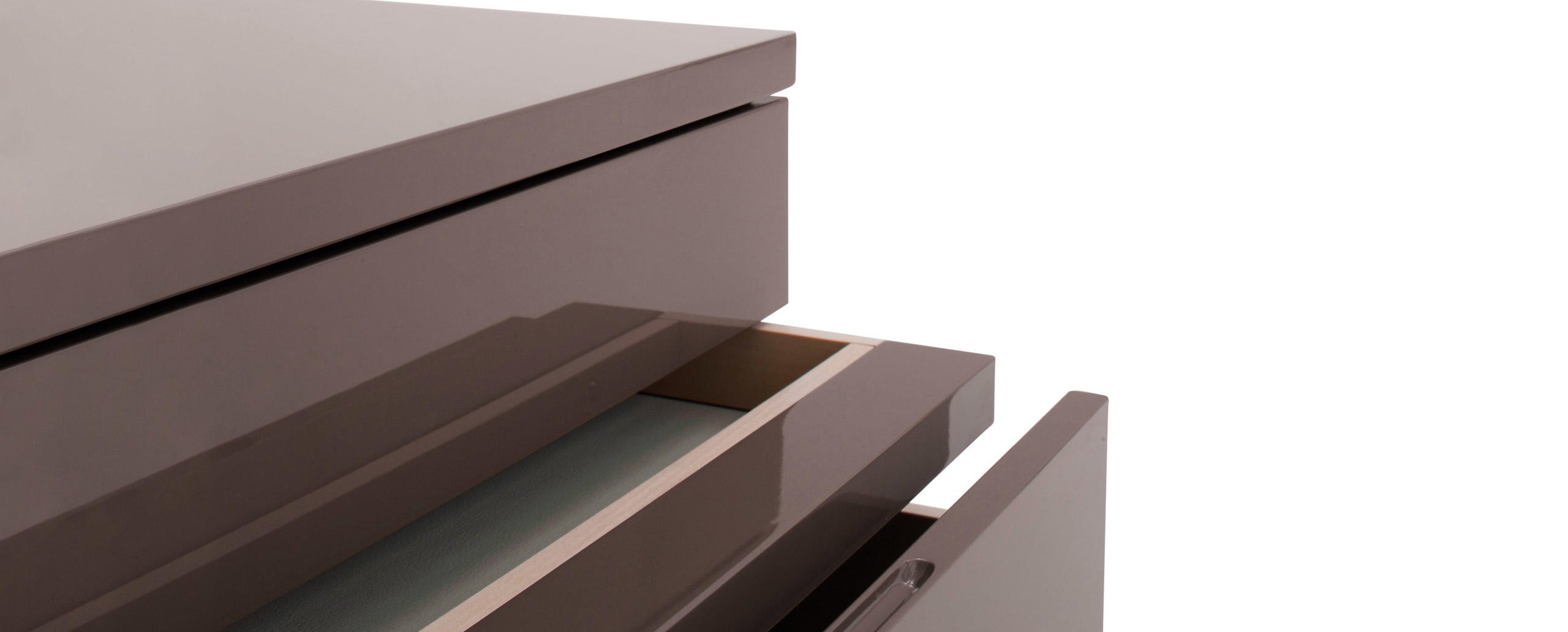 Una proposta di contenitori componibili, facilmente posizionabili sia nel living che nella zona notte. Gli elementi verniciati poliestere con finitura lucida, specchiante o opaca, sono realizzati secondo la tecnica di laccatura tradizionale utilizzata su diversi modelli della SimonCollezione. I contenitori flessibili e sovrapponibili sono disponibili a giorno, con cassetti e ante di chiusura. Per la stanza da letto è presente un comodino con maniglia ricavata sul bordo longitudinale del frontale cassetto, declinato in differenti combinazioni secondo il gusto e le esigenze.
