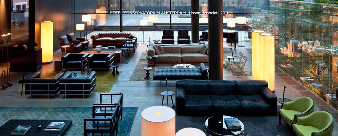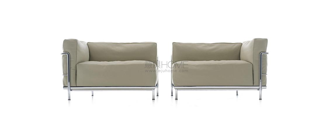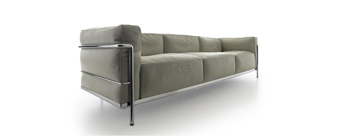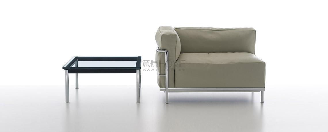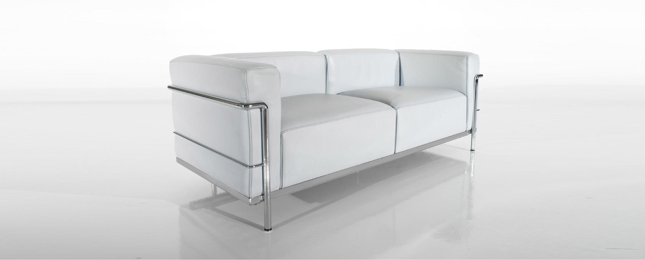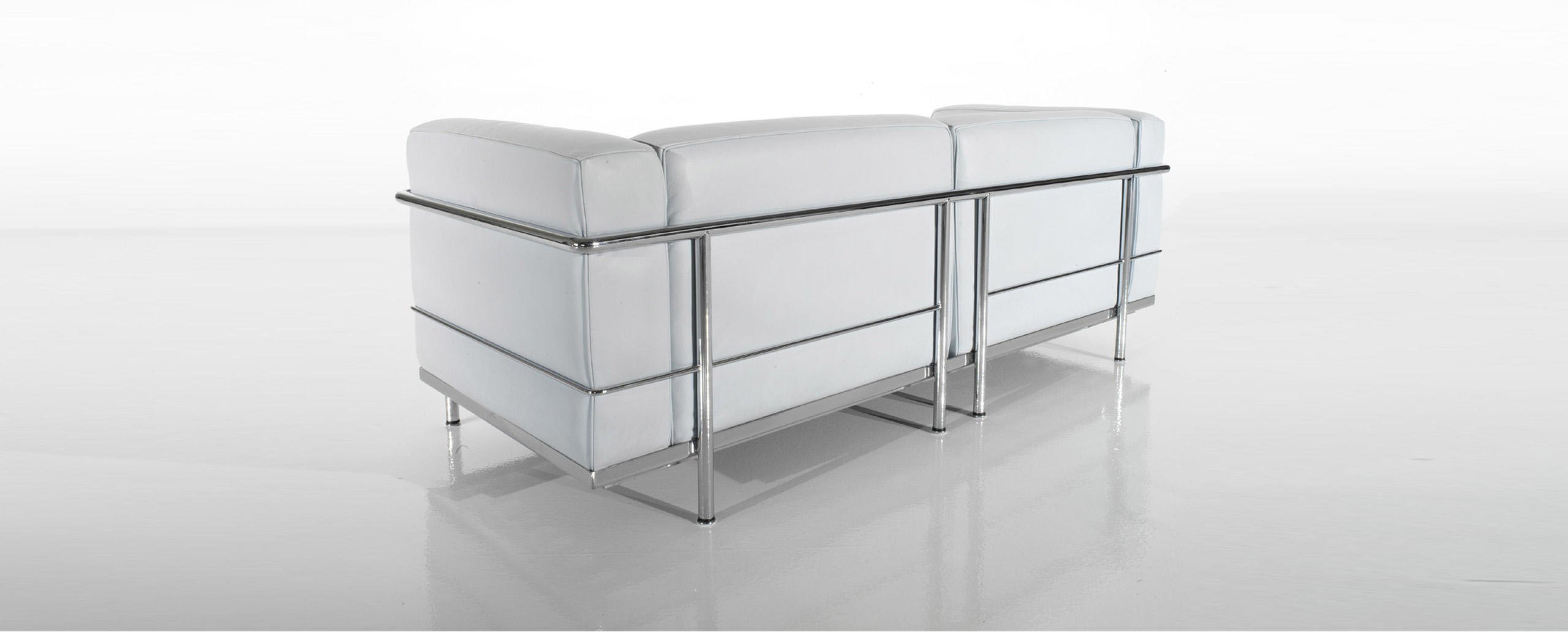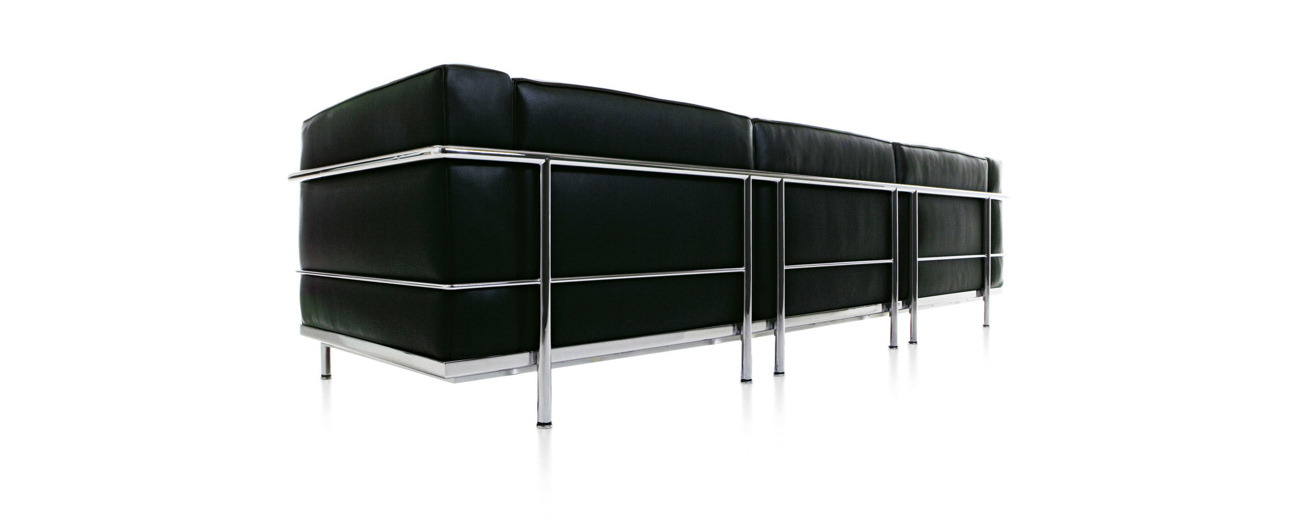 Fauteuil Grand Confort, grand modèle Quattro cuscini, privi di legami, sono contenuti in una gabbia di tubi di acciaio verniciato o cromato, che costituisce il supporto primario dell’oggetto. Poltrona con due braccioli e poltrone con bracciolo sinistro o destro, divani a due o a tre posti con struttura in acciaio cromato trivalente (CR3) oppure verniciato nella palette di colori originali di Le Corbusier. Il rivestimento dei cuscini è in tessuto oppure in pelle.