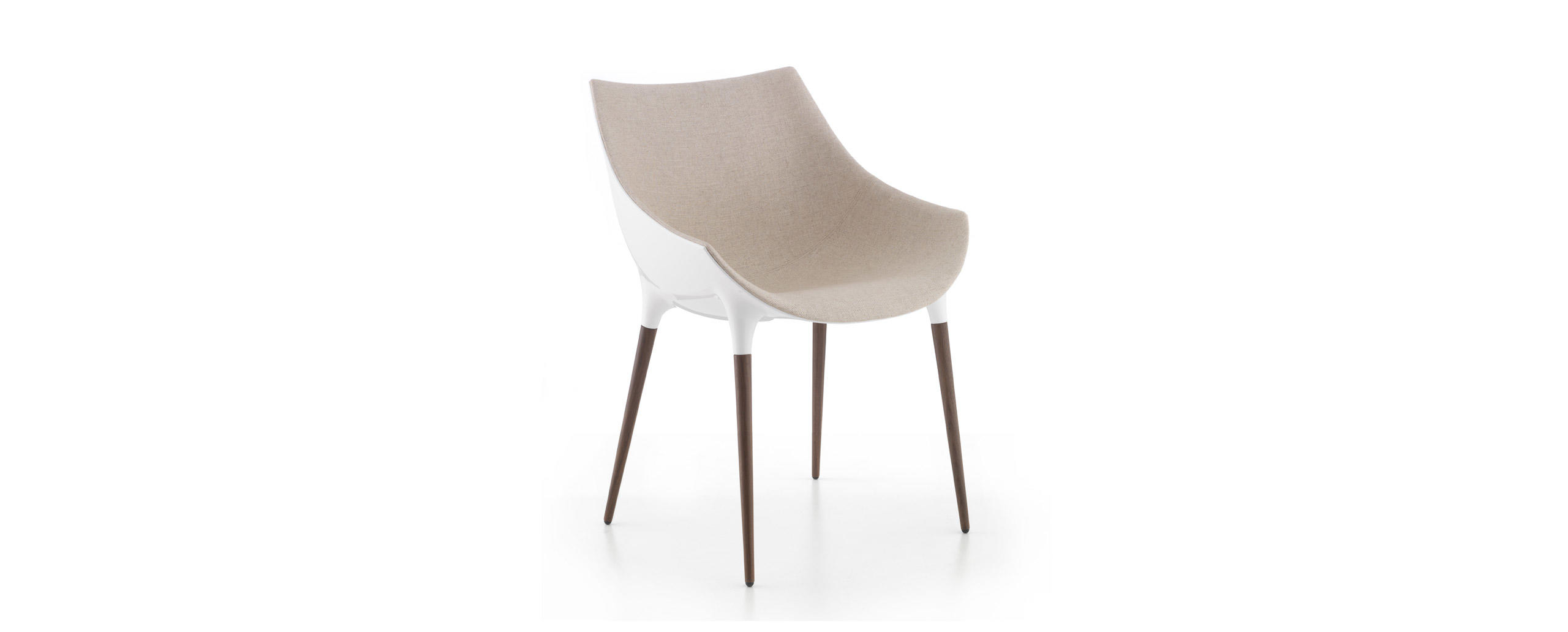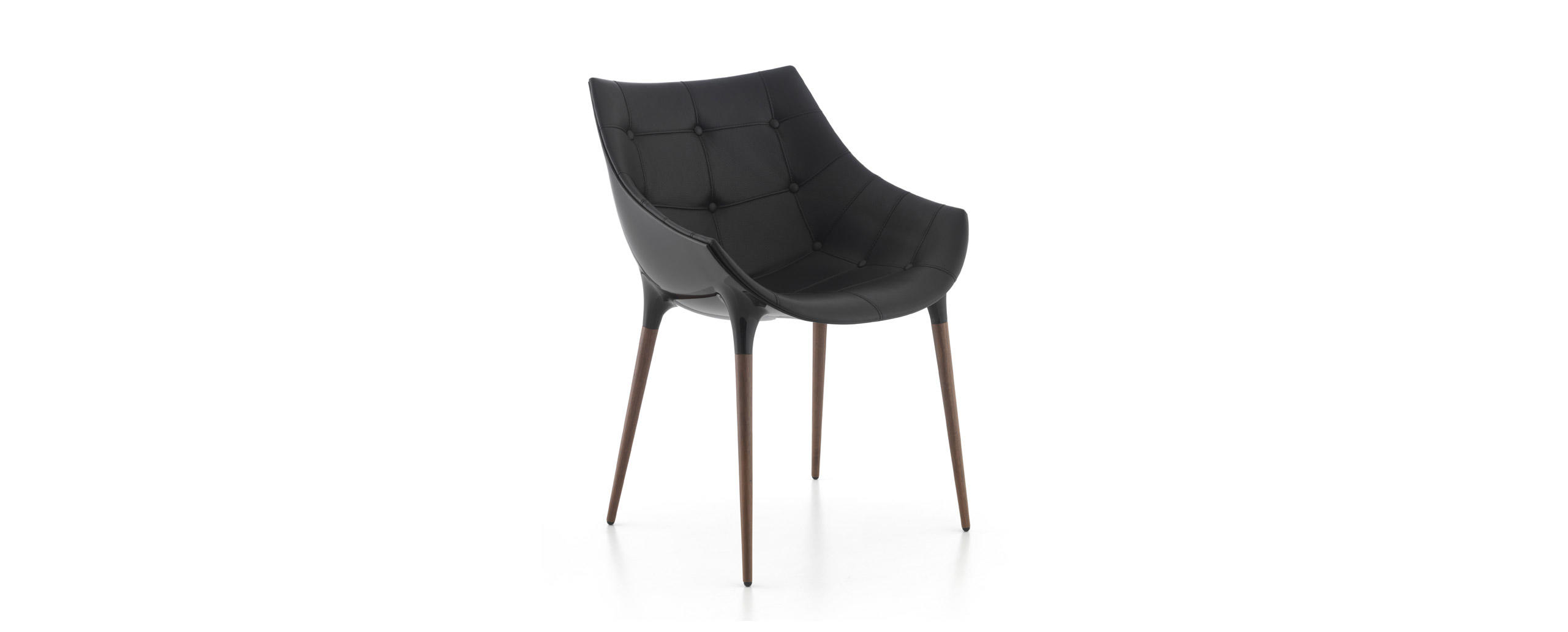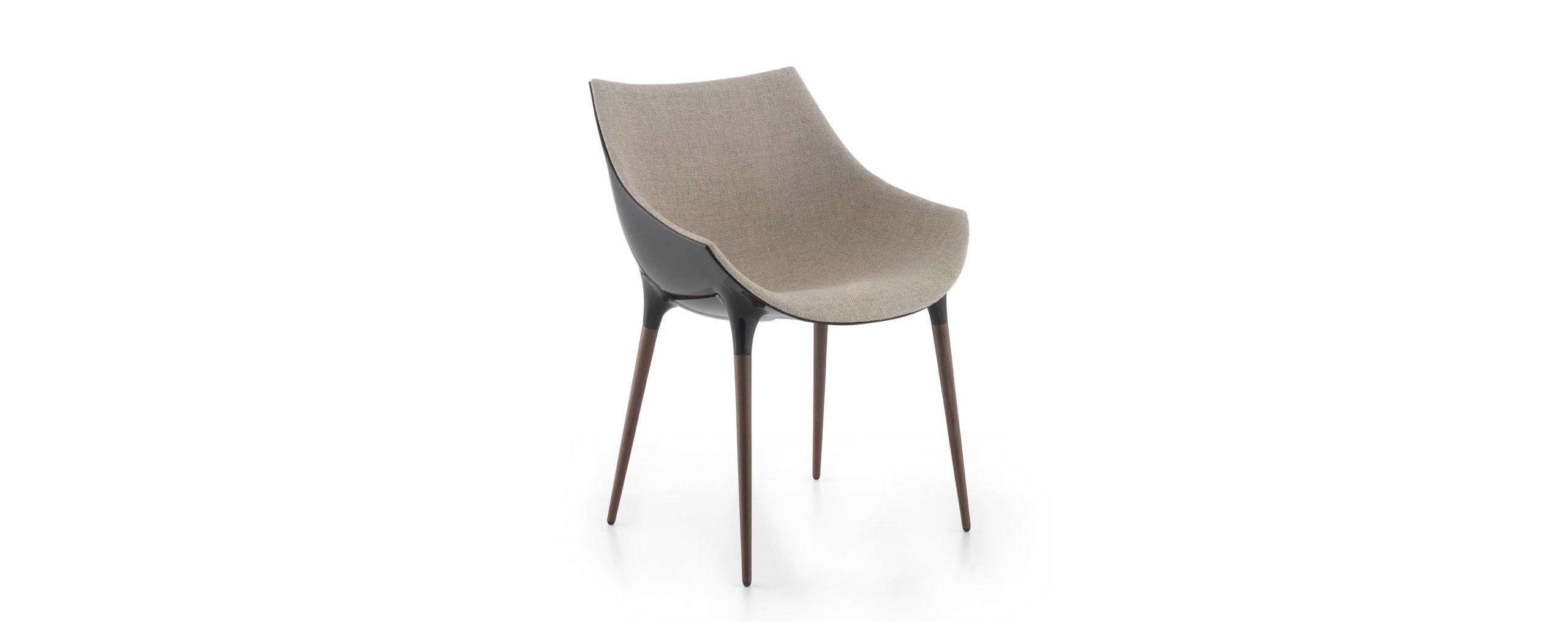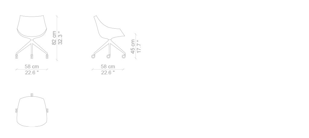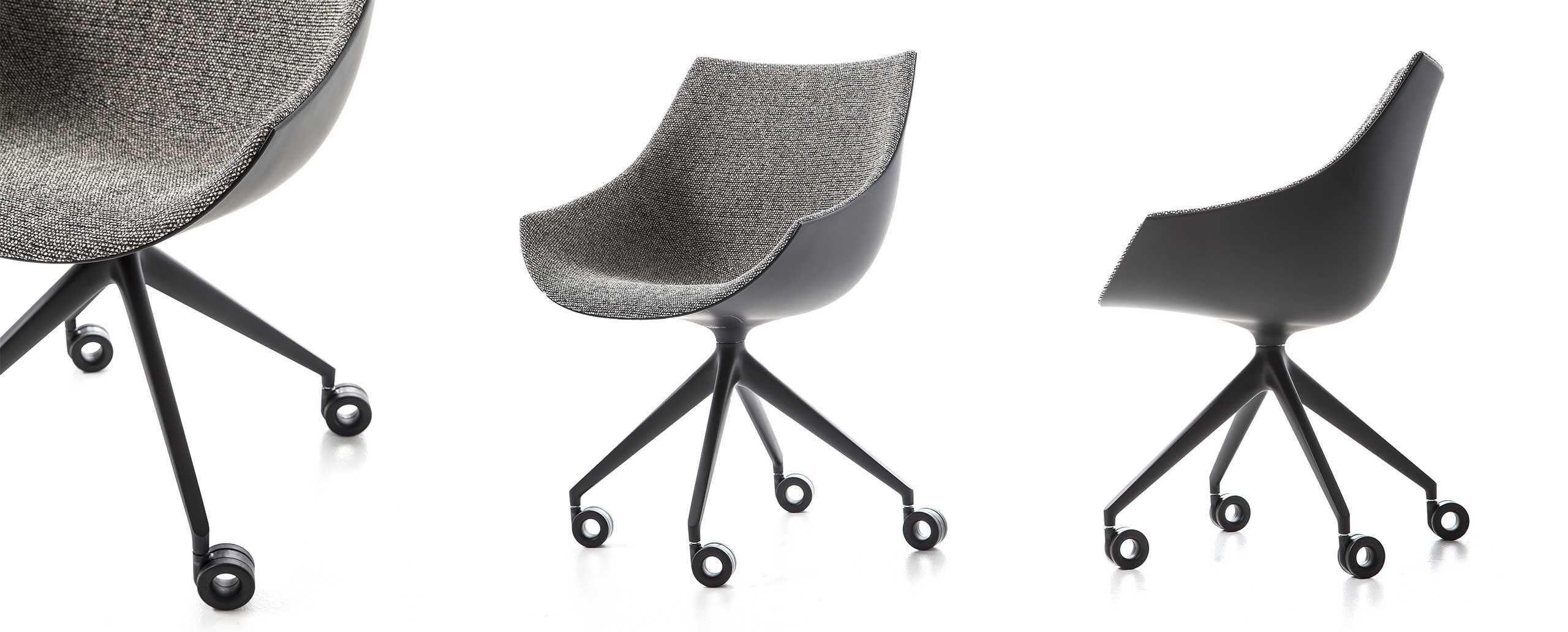 Due sedie emblematiche dell’approccio innovativo di Cassina, in grado di coniugare eleganza stilistica, tecnica costruttiva e praticità quotidiana in un prodotto maturo ed eclettico, adatto sia ad uno uso residenziale che contract. La serie Caprice e Passion si amplia per introdurre due nuove versioni interamente realizzate in alluminio, rispettivamente caratterizzate da una base girevole a forma di petalo e da una struttura a 4 razze con o senza ruote. La sagoma futuristica della scocca in nylon, derivata dai più avanzati esperimenti di fabbricazione, è rivestita con un’imbottitura liscia o capitonné, brevettata industrialmente e modellata sulla struttura come un abito sartoriale dalle linee fluide e leggere. Se Caprice si distingue per il design iconico e distintivo, Passion ne reinterpreta la costruzione e le finiture in una poltroncina dal profilo accogliente e confortevole.