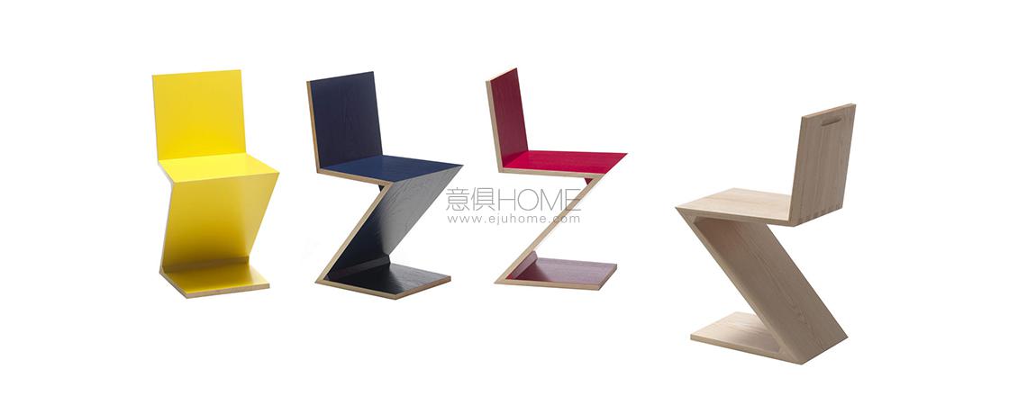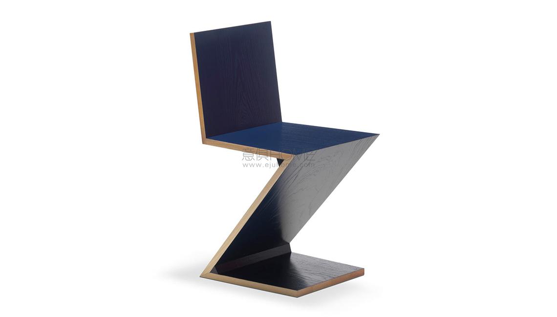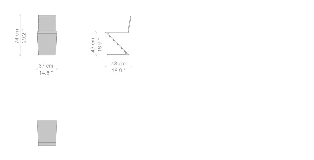 La sedia progettata da Rietveld rappresenta uno dei primi esempi di seduta a sbalzo, formata da quattro piani in sequenza ritmica che si sviluppano in un’apparente instabilità di grande raffinatezza. Il maestro sostituisce la normale successione degli elementi - gambe-seduta-schienale – con un foglio continuo in legno a forma di zeta rovesciata. La maestria costruttiva dei falegnami di Cassina si rivela nell’esecuzione degli incastri a coda di rondine che valorizzano la struttura. L’unicità estetica dell’oggetto si percepisce in modo particolare nella versione colorata con finitura a poro aperto che esalta le venature del legno nei piani e nelle sezioni laterali; un trattamento che riprende alcune varianti realizzate dall’architetto per valorizzare il rapporto tra linee verticali, oblique e orizzontali.