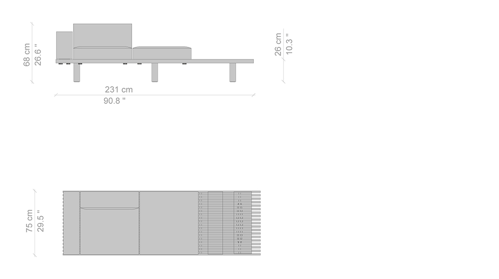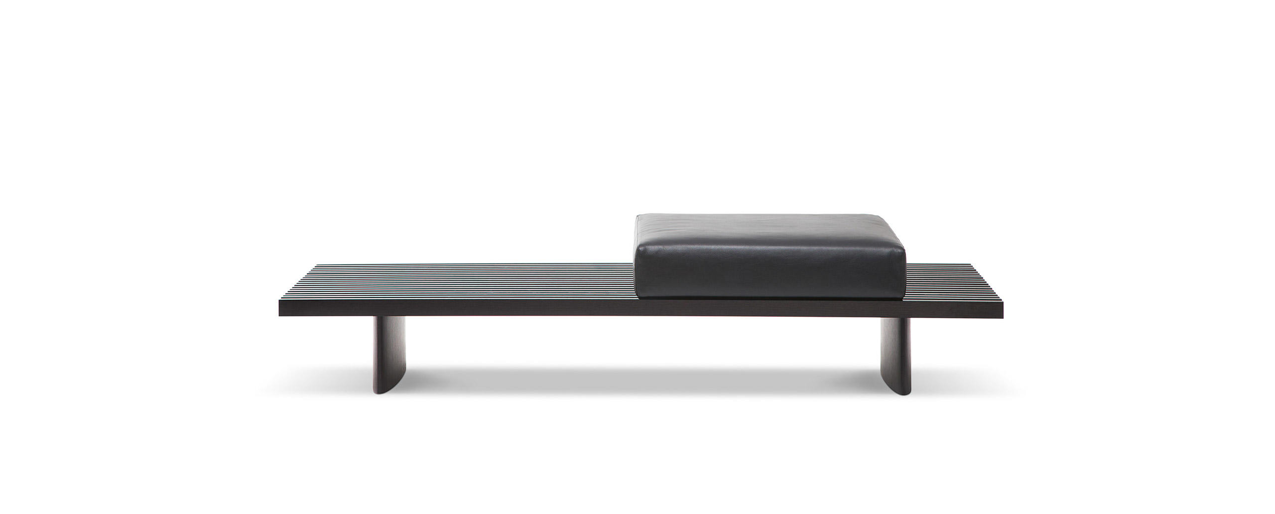 Un sistema modulare dai volumi semplici ed essenziali, ideato a Tokyo, nel 1953, da Charlotte Perriand, eppure ancora oggi straordinariamente attuale. La ricerca e l’impostazione del progetto si basarono sulla priorità del ruolo funzionale portando l’autrice ad una semplificazione formale di chiara ispirazione orientale. Il piano è costituito da una grata di 19 listelli ordinati in parallelo, declinato nella finitura in rovere naturale o tinto scuro, dotato di due o tre piedini e posto ad un’altezza misurata per un uso polivalente. I cuscini sono integrati in modo armonico mediante un semplice sistema di fissaggio che consente di posizionarli liberamente in qualsiasi punto, secondo il gusto e le esigenze. Ideale per gli ambienti giorno e per le zone relax, Refolo offre una molteplicità di configurazioni e modalità d’uso adatte al riposo e alla conversazione.