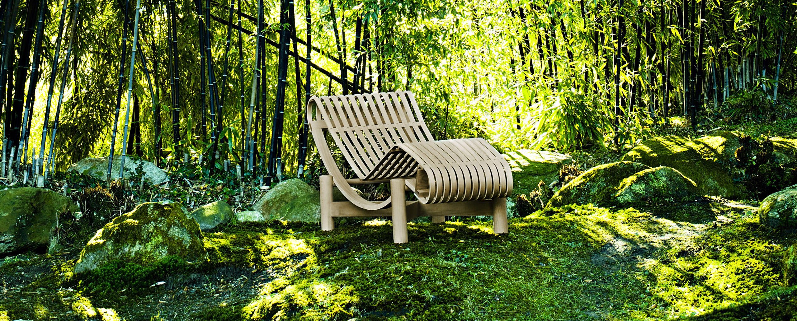 Un pezzo di storia del design attraverso cui Cassina esprime la sua eccezionale maestria nella lavorazione del legno. Un progetto inedito del 1940, realizzato da Charlotte Perriand durante il suo soggiorno a Tokyo, utilizzando il bambù per la rivisitazione della celebre chaise longue LC4. La forma organica, sinuosa e accogliente, è rieditata anche in teak oltre che in legno di bambù. Il piano sdraio è costituito da 12 listelli curvati e da una culla di listelli nello stesso materiale, uniti da preziosi elementi di giunzione in ottone satinato. L’integrazione di materassini adatti all’utilizzo outdoor prevede differenti colori per arredare con gusto la veranda, la terrazza o il dehors.