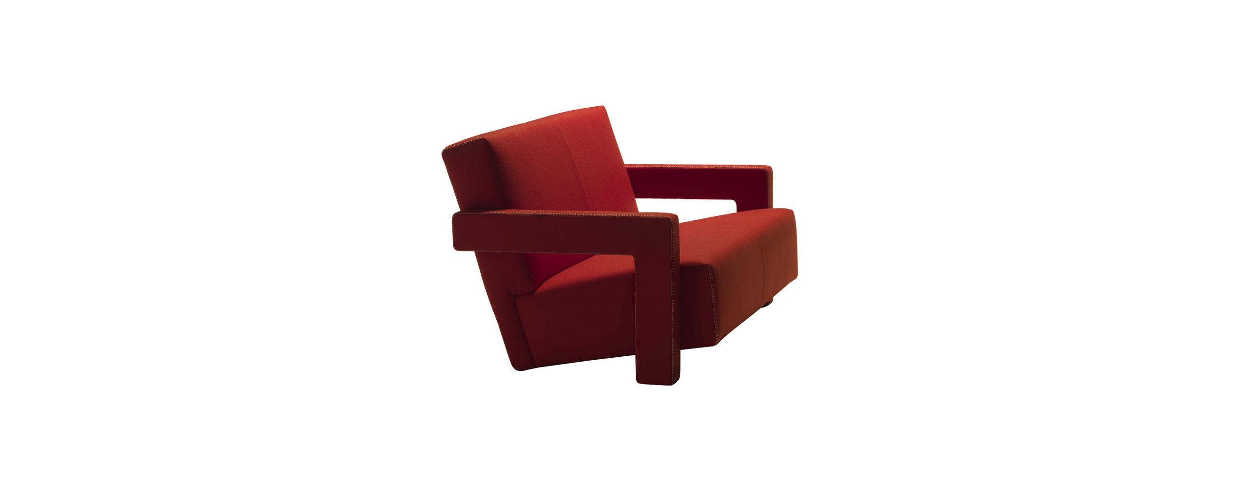 Gerrit Rietveld progetta la poltroncina Utrecht nel 1935, per il grande magazzino Metz & Co di Amsterdam, orientando il design nell’ottica della distribuzione allargata. L’approccio maggiormente rivolto al mercato, focalizzato sui valori del comfort e del relax, compie la scomposizione degli elementi divenendo un’icona del movimento neoplastico e della visione sperimentale dell’architetto olandese. Dal 2015 questo primo esemplare di poltroncina senza piedini di sostegno entra nel programma Mutazioni e viene rieditato da Cassina come risposta antropometrica agli scatti di crescita generazionale. Il rivestimento esterno in tessuto Gerrit è disponibile con impuntura a punta di cavallo o a zig zag, entrambe disponibili in 5 colorazioni distinte.