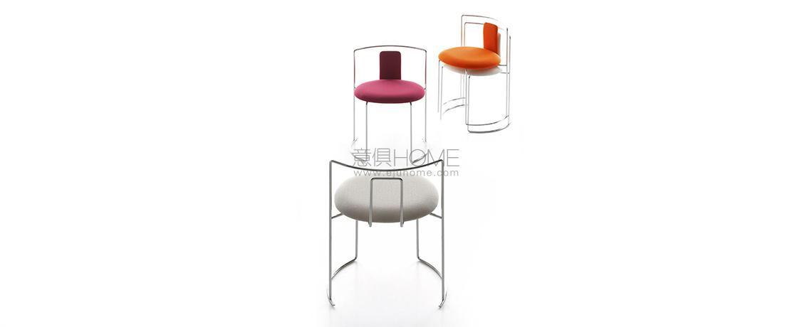 Leggera, aerea, impilabile. Gaja è un oggetto contemporaneo che rimanda alla classicità pura del razionalismo. La struttura aperta, realizzata in tondino di acciaio elettrosaldato e cromato, nasce per un piccolo ristorante e viene in seguito inserita nella SimonCollezione per il suo carattere agile e pratico. Il modello è disponibile con schienale imbottito o nella versione a sgabello, entrambi ideali per l’arredo in ambito soft contract.