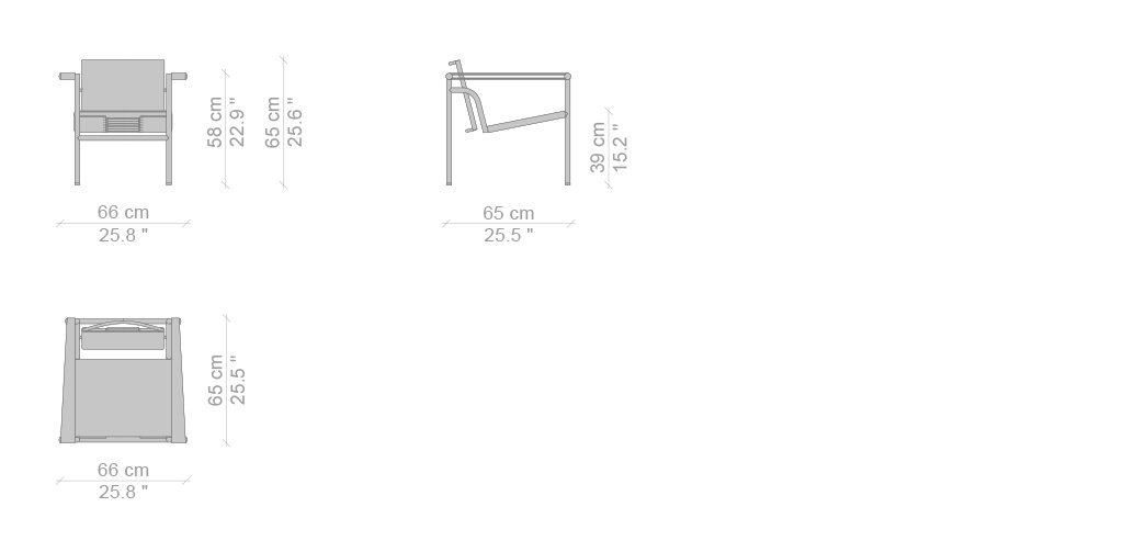 Questa versione della poltroncina LC1 fu presentata alla prima mostra dell’Unione degli artisti moderni nel 1930, una mostra attraverso la quale si mostrò come gli arredi, presentati l’anno prima al Salon d’Automne, potevano essere realizzati con una più ampia varietà di rivestimenti.