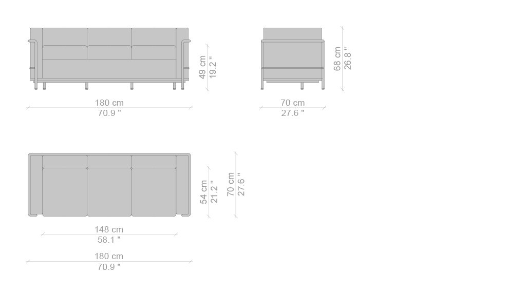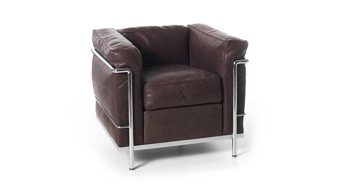 Fauteuil Grand Confort, petit modèle Poltrona, divani a due e a tre posti e pouf con strutture in acciaio cromato lucido o verniciato nella palette di colori LC. Rivestimenti dei cuscini indipendenti in tessuto o pelle.LC2 è un modello senza tempo, che ha fatto la storia del design.La poltrona, disegnata nel 1928 ed esposta al Salon d’Automne a Parigi nel 1929, è l’archetipo della poltrona nella nuova e moderna concezione degli arredi intesi come “attrezzature domestiche”, rieditata da Cassina e prodotta in esclusiva dal 1965.L’indipendenza fra la struttura metallica e i cuscini esprime logica del razionalismo: la separazione tra parti secondo una logica di produzione industriale.