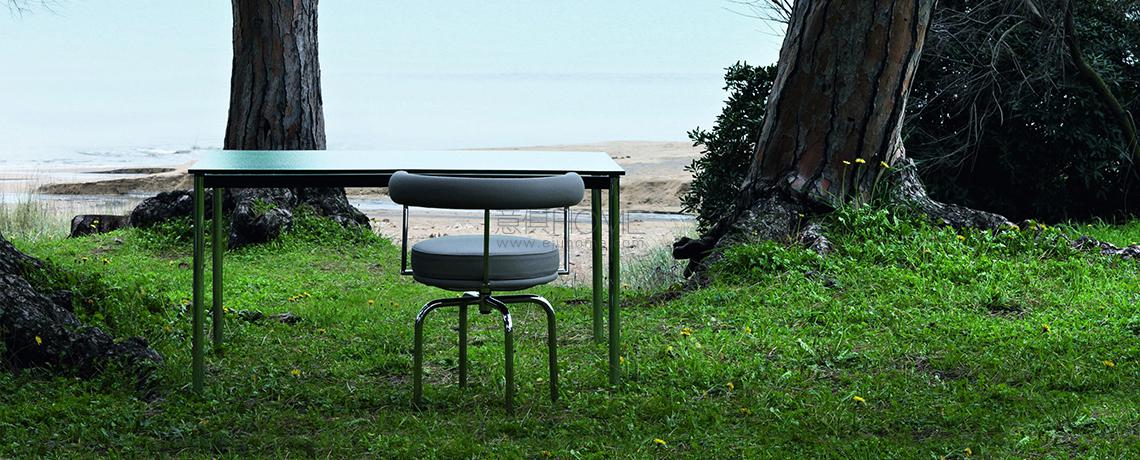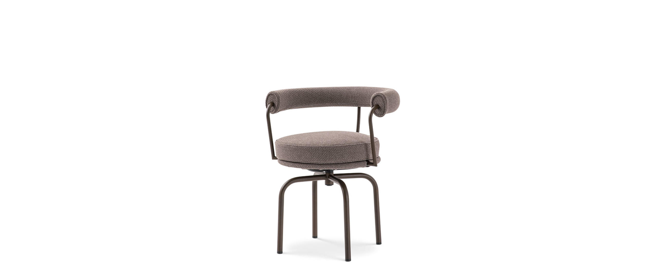 Un’icona dall’anima versatile e funzionale, disegnata nel 1927 da Charlotte Perriand per il suo appartamento parigino di Place Saint-Sulpice. Il progetto fu dapprima presentato al Salon des Artistes Décorateurs del 1928 e in seguito esposto al Salon d'Automne nel 1929, integrato alla collezione co-creata da Charlotte Perriand insieme a Le Corbusier e Pierre Jeanneret. La poltroncina girevole, disponibile nella versione con 4 o 5 gambe, è caratterizzata dallo schienale e dal cuscino-sedile imbottiti in poliuretano espanso e ovatta di poliestere, con rivestimento in pelle o in tessuto. La versione outdoor è realizzata in acciaio inossidabile verniciato con vernici a polvere specifiche per esterno in 5 colori goffrati e un particolare rivestimento in tessuto filato di poliestere che riproduce l’estetica dei modelli da interno. A partire dal 2016 la poltroncina è stata oggetto di un importante aggiornamento strutturale che ha portato all’ottenimento delle certificazioni Catas.