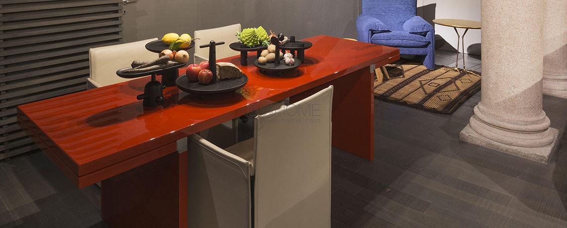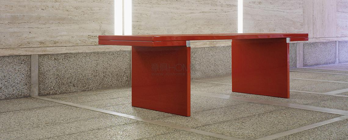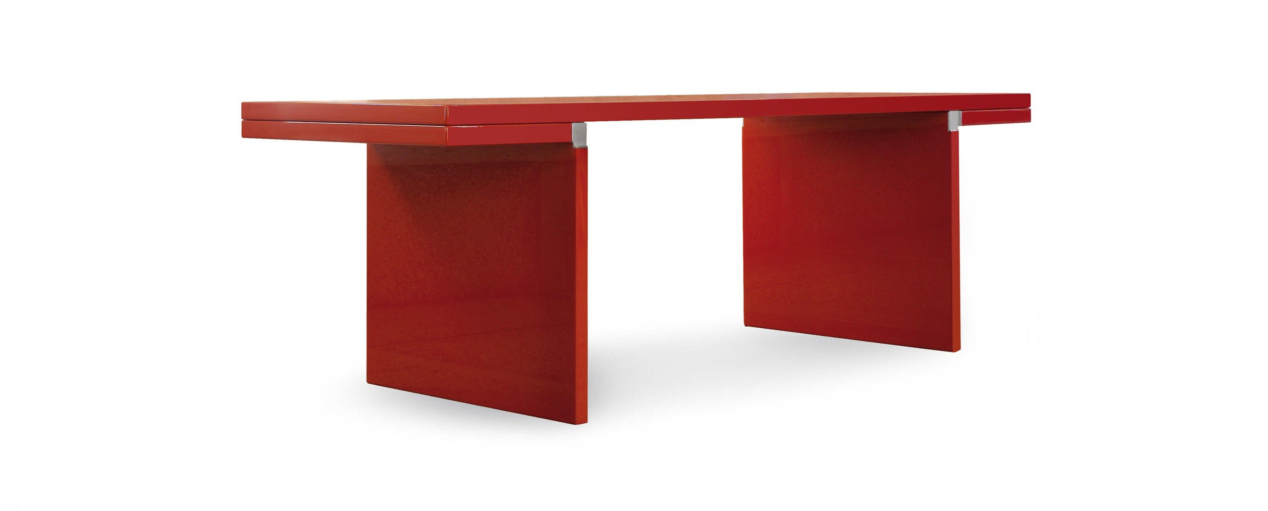 Un capolavoro assoluto. Un insuperato modello di bellezza formale che nasce da una grande intuizione di Carlo Scarpa. Il tavolo Orseolo è fabbricato con lastre di MDF rivestite con uno spessore di lacca di poliestere lucida specchiata o opaca, che viene versata a caldo, spazzolata e lustrata con macchine apposite. I panelli geometrici dal design elementare sono assemblati con giunzioni in fusione di alluminio satinato. Questo elemento di  snodo rivela una duplice finalità estetica e funzionale, poiché le giunzioni fungono da punti di massima sollecitazione consentendo alla finitura laccata di conservare la sua bellezza nel tempo.
