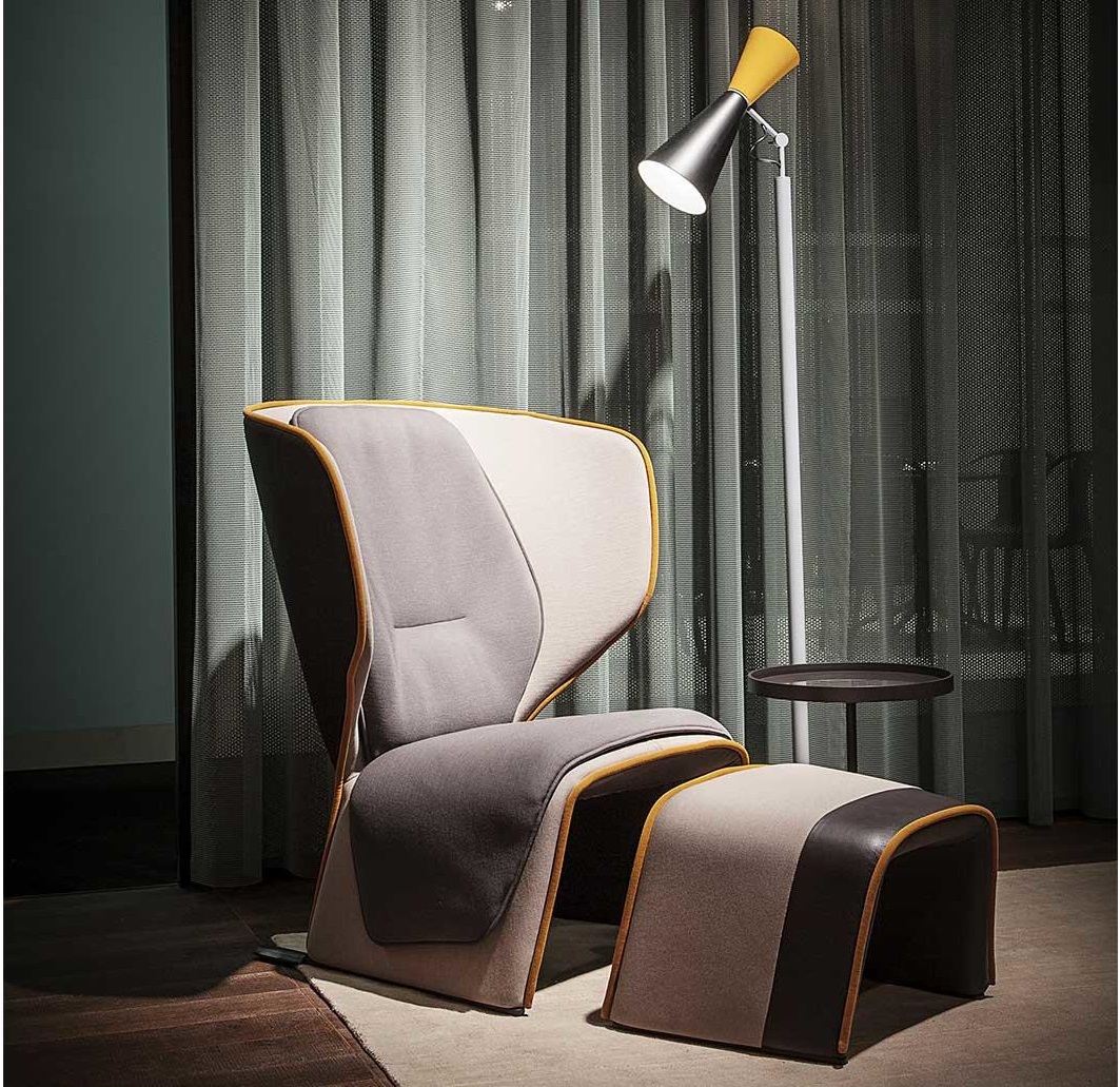 Gender è una poltrona avvolgente, elegante e flessibile. La sua identità mutevole nasce dall’incontro di colori e materiali apparentemente contrastanti ma combinati tra loro con infinita maestria. Lo schienale si adatta alla pressione del corpo inclinandosi di circa 12 gradi per poi tornare automaticamente in posizione, agevolato da un meccanismo di oscillazione che accresce la sensazione di comfort e morbidezza. La seduta, unica nel suo genere, è arricchita da un prezioso bordo in pelle colorata che corre lungo ogni profilo per valorizzare la sinuosità delle forme. La poltrona è disponibile in sette diverse combinazioni ed è abbinabile al pouf coordinato dotato di fascia protettiva in pelle.