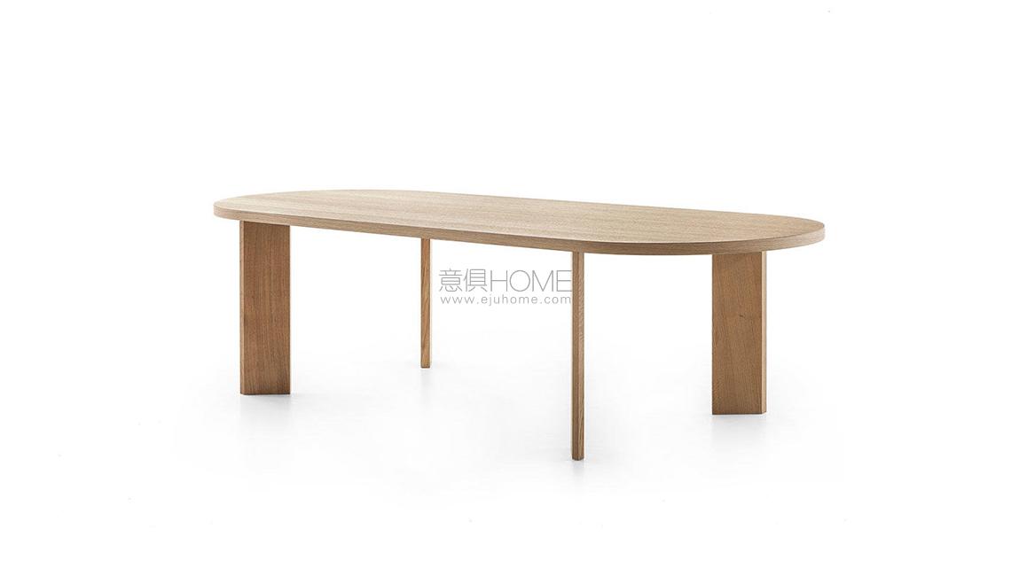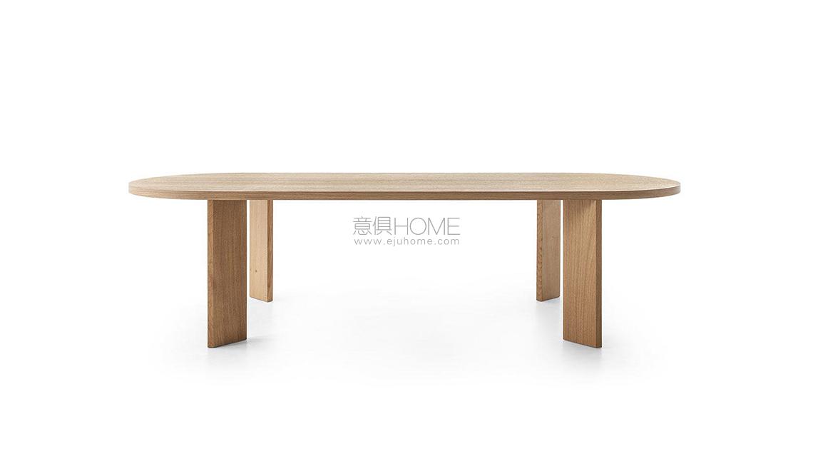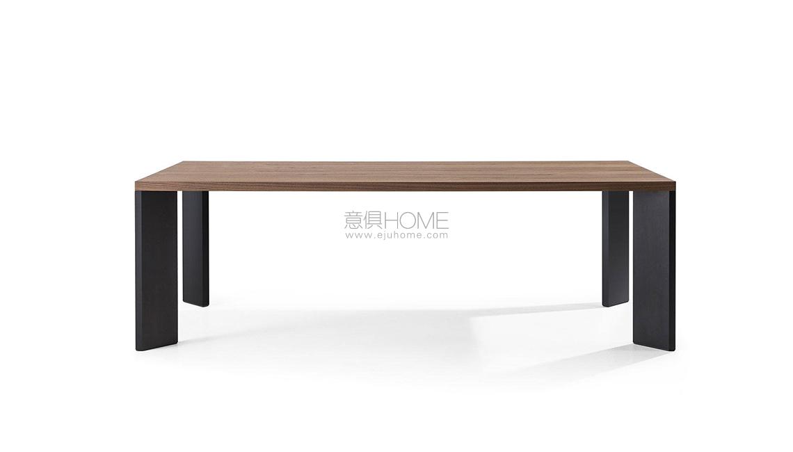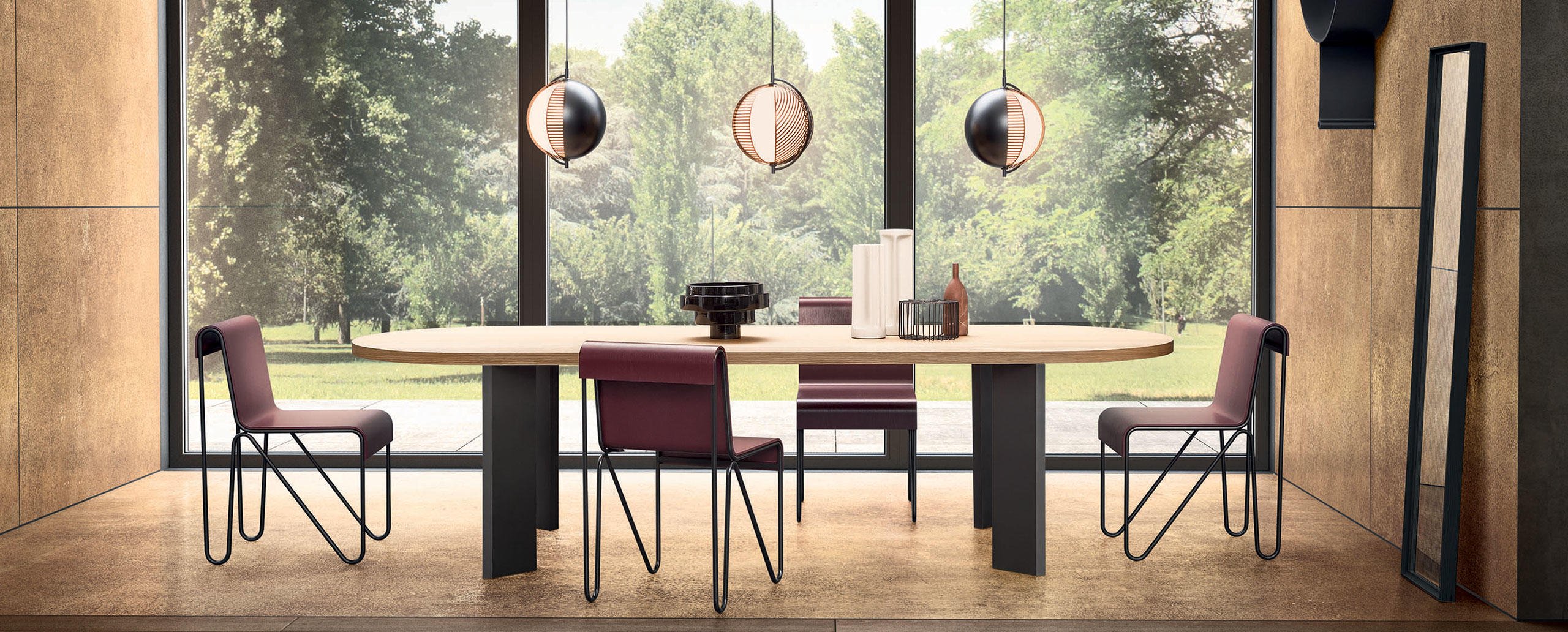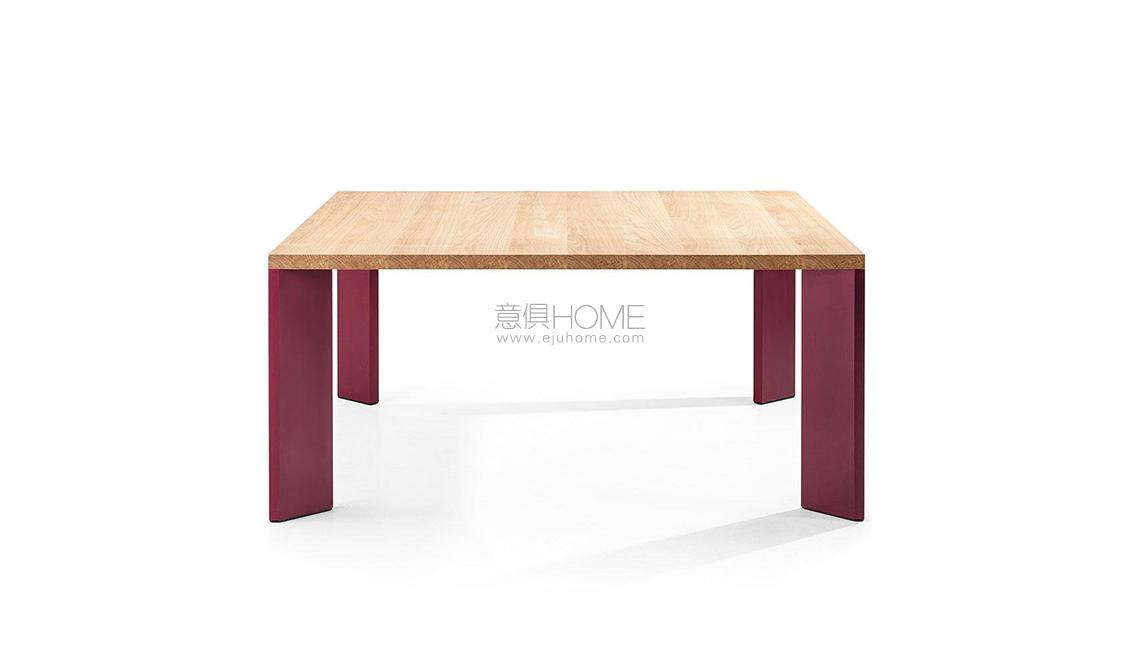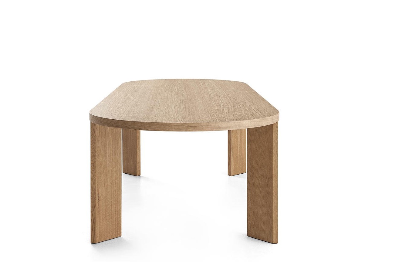 Una collezione di tavoli da pranzo contemporanei e sculturali, in cui la tipica lavorazione in metallo dell’autore si unisce all’artigianalità e alla competenza della falegnameria Cassina. Il design pulito ed essenziale abbina un piano in legno di minimo spessore alle gambe sottili, in legno o in alluminio anodizzato o verniciato, poste in diagonale alle estremità del tavolo per garantire maggiore spazio ai commensali. Una sfida estrema per il Centro Ricerche dell’azienda, che ha saputo elaborare una soluzione innovativa in grado di coniugare stabilità, resistenza e spessori ridotti. L’offerta prevede due versioni quadrate, una ovale con piano laccato o impiallacciato, e due versioni rettangolari di cui una in legno massello. Quest’ultima è integrata con un meccanismo metallico regolabile, nascosto nella parte inferiore del piano, che consente di contrastare le tensioni e i movimenti del legno. I modelli con piani impiallacciati presentano preziosi bordi in legno massello.