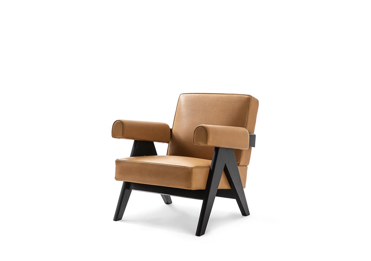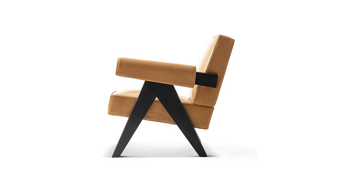 L'inclusione nella lista del patrimonio mondiale Unesco avvenuta nel 2016 ha suscitato un grande interesse verso il Capitol Complex di Le Corbusier, una straordinaria opera architettonica realizzata a Chandigarh nel 1951 per celebrare l’indipendenza di una nazione che si apre alla modernità. L’Haute Cour, insieme al Secretariat e all’edificio dell’Assemblée, costituisce il nucleo fondativo del Capitol Complex di Chandigarh. Nelle sue sale erano presenti comode poltrone dalla corposa imbottitura. In esse si ritrova lo schema compositivo degli arredi caratterizzati dalla tipologia a “V” dei sostegni. Gli appoggi, insieme ai traversi di connessione e alla parte finale di giunzione dei braccioli con lo schienale, sono le uniche parti in legno a vista. L’imbottitura del bracciolo avvolge quasi completamente il bracciolo, disegnando di testa una geometrica sagoma arrotondata, e insieme ai cuscini sedile e schienale nitidamente distinti, restituisce una idea di comfort immediata, non disgiunta da eleganza e semplicità. La riedizione Cassina propone oltre alla storica versione in teak, due versioni in rovere naturale e tinto nero.