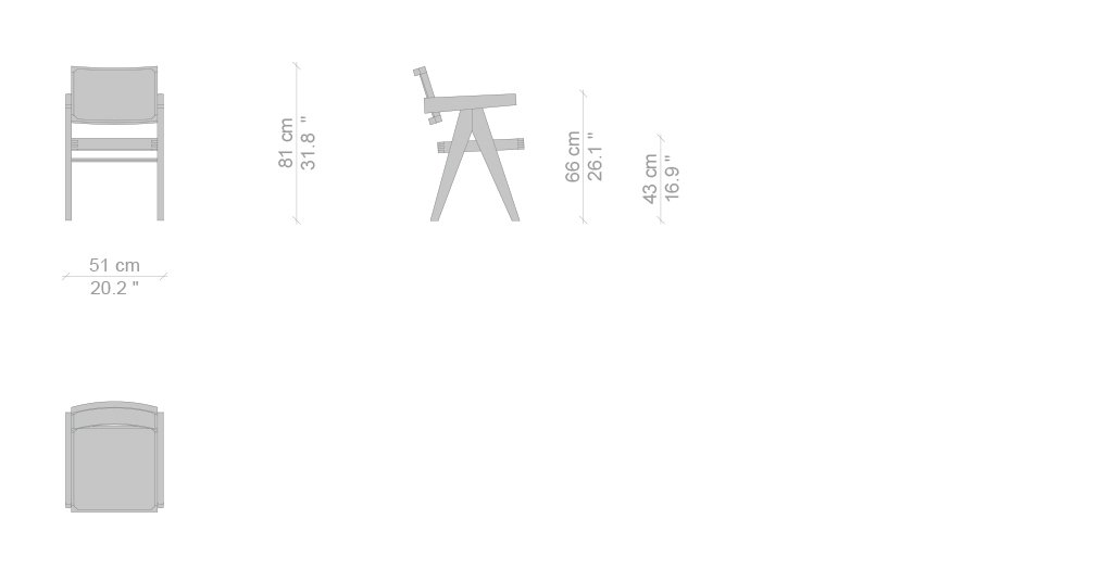 Questa sedia è uno dei modelli più conosciuti tra gli arredi del Capitol Complex di Chandigarh e si trovava in diversi uffici amministrativi del palazzo del Secretariat. E’ costituita da elementi separati tra cui i sostegni laterali posizionati a forma di “V” rovesciata per convergere a sostenere il bracciolo anch’esso in massello. L’impagliatura del sedile e dello schienale all’interno di un telaio in legno sono invece elementi caratteristici dello spirito del luogo, espresso anche nell’uso di legni locali come il teak. In coerenza con la più conosciuta Office Chair, la sedia senza braccioli utilizza anche essa la tipologia a “V” degli appoggi, in tal caso più ridotti poiché non si estendono sino al bracciolo. In essa la priorità è data alla sequenza sedile -schienale in paglia di Vienna, posti in continuità e uniti da due profili in legno dalla massiccia sezione geometrica, elementi che strutturano, con le gambe complanari, un insieme possente e semplice allo stesso tempo. La riedizione Cassina propone oltre alla storica versione in teak, due versioni in rovere naturale e tinto nero.