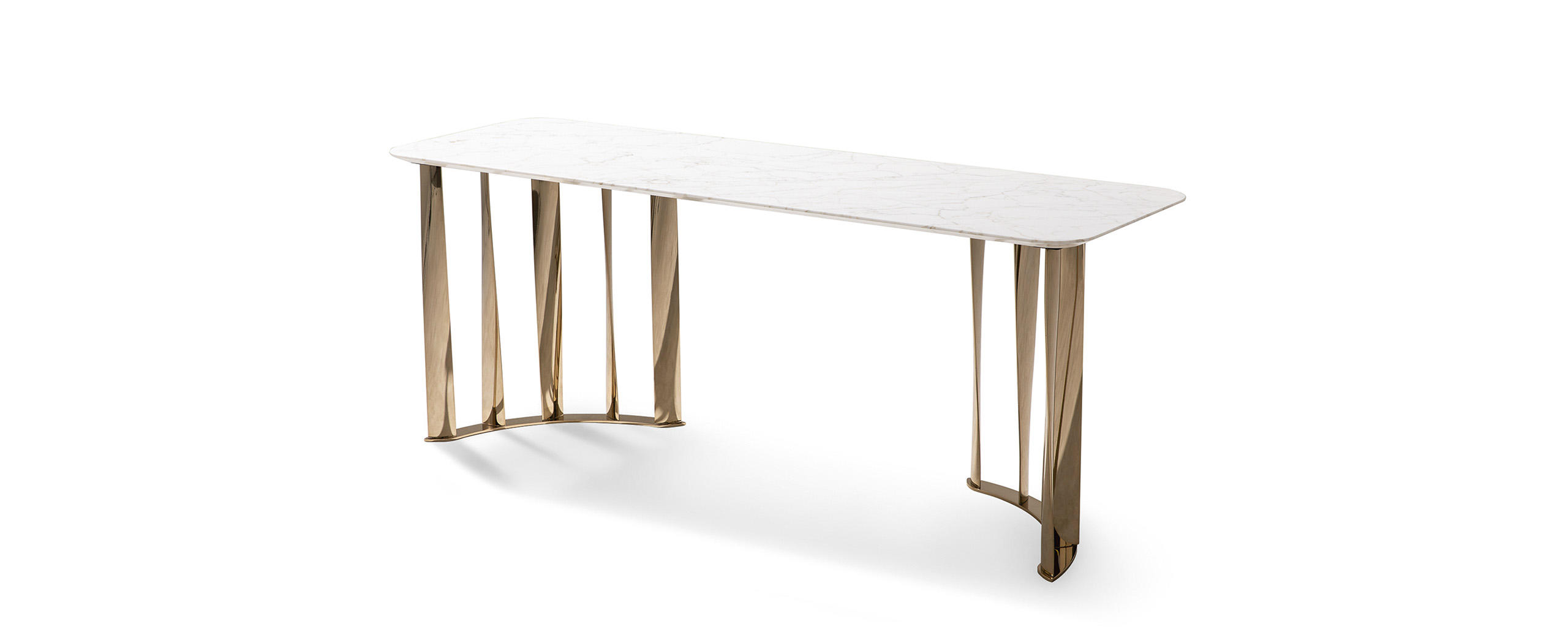 Il tavolo Boboli si distingue per le sue geometrie architettonicamente ordinate, in cui la grande sfida costruttiva portata a termine da Cassina risiede nella capacità di rendere stabili le sottili barre elicoidali a sostegno della struttura. Elementi non solo portanti ma anche estetici, che rendono omaggio ai classici giardini all’italiana evocando lo sviluppo verticale della vegetazione. Il movimento sinuoso delle doghe di alluminio ritorto conferisce al design un effetto scultoreo di grande fascino stilistico, dove rigore e fantasia si alleano per sfidare i limiti e la natura della materia. Oggi la famiglia si espande con una nuova collezione di tavolini di servizio, tavolini bassi e un tavolo consolle. I tavoli sono disponibili in una vasta gamma di finiture e dimensioni.
