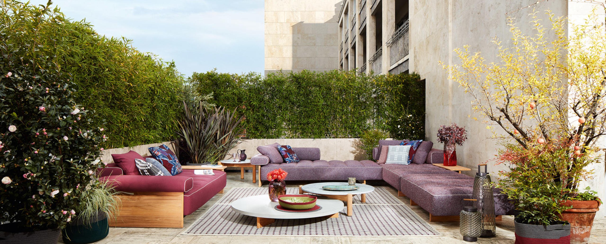 Il primo esemplare storico è stato realizzato nel 1937 per l’atelier di Charlotte Perriand a Montparnasse. La struttura del basamento era costituita da tre gambe a sezione circolare unite da traversi sui quali veniva appoggiato il piano, che poteva essere intercambiabile. Un progetto pensato per essere declinato in modi diversi; il modello infatti si ritroverà in molti altri e successivi progetti di Perriand, da quelli giapponesi degli anni 40, con piani o vassoi intrecciati realizzati con materiali locali, a quello dello spazio soggiorno degli appartamenti delle Unité d’Habitation a Marsiglia. Il Table à Plateau Interchangeable, oggi presente nella Collezione Cassina I Maestri, è stato sviluppato anche per uso esterno. La versione outdoor, in due misure come il modello per interni, ha una struttura in massello di teak e il piano in marmo di Carrara con finitura olio-idro.