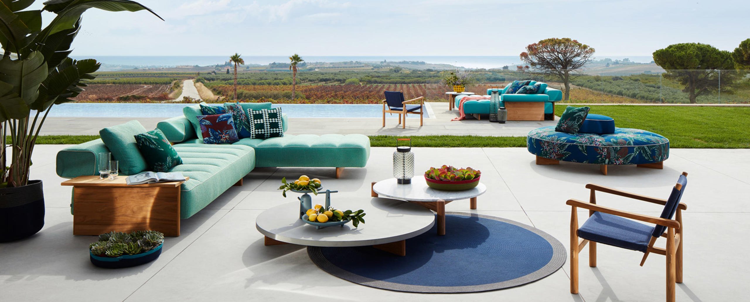 Gli accessori da esterno completano l’offerta di Cassina per l’arredo degli spazi living e dining open air.