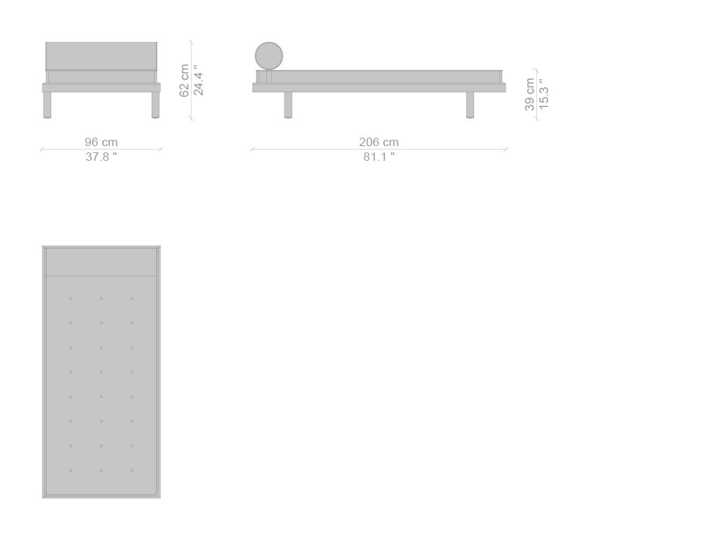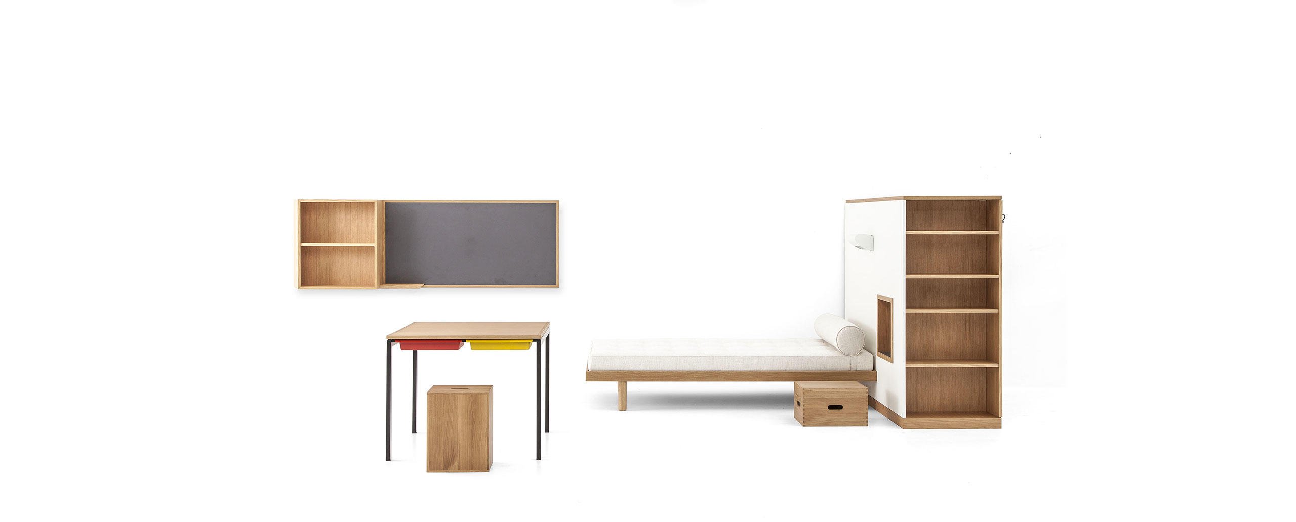 Una ricostruzione fedele della stanza della Maison du Brésil inaugurata nel 1959 nella città universitaria internazionale di Parigi. Agli inizi degli  anni ’50 il governo brasiliano commissionò il progetto all’architetto Lucio Costa, che coinvolse Le Corbusier fino a cedergli progressivamente la realizzazione e la firma dell’edificio. Lo studio del maestro riprogrammò alcuni elementi fondamentali per poi collaborare con Charlotte Perriand alla rielaborazione degli interni. Nella concezione di Le Corbusier l’armadio suddivideva la zona di ingresso e il blocco sanitario dalla zona letto e studio, mentre l’interpretazione di Charlotte Perriand, fondata sull’organizzazione razionale degli spazi, favorì l’uso di un armadio attrezzato fruibile da più lati. Per il progetto del letto si ricorse all’impiego di una struttura  minimale in legno massello, con un materasso e un cuscino a rullo, in sostituzione della struttura metallica. La stanza è costituita anche da una libreria-lavagna a muro, da un tavolo scrittoio e dall’omonimo Tabouret, già presente nella collezione Cassina.